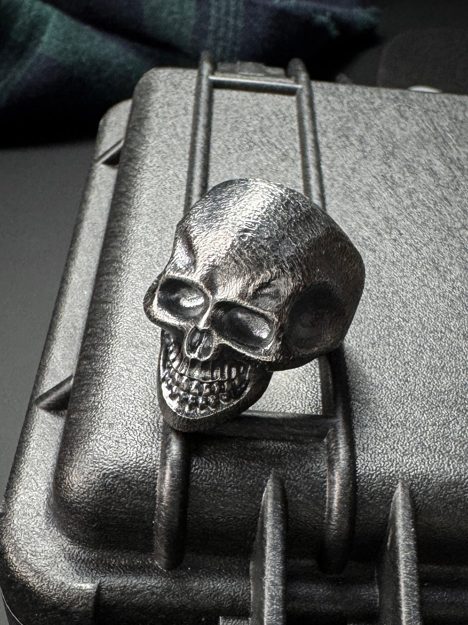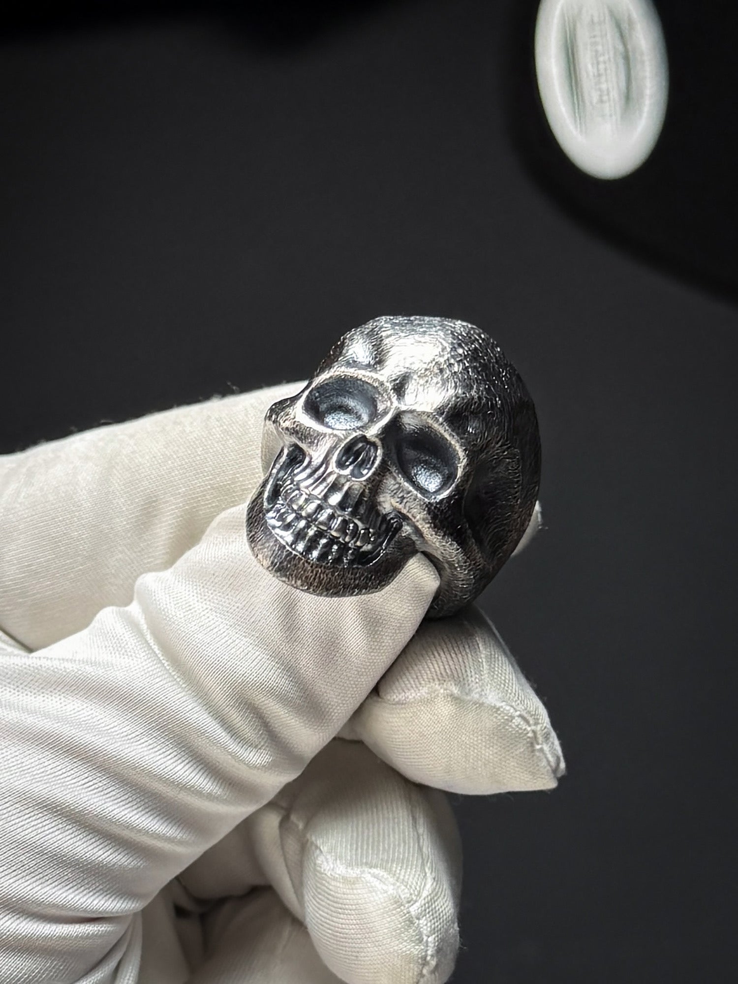 素材: ダークシルバー仕上げで、骷髏の細部を際立たせています。
