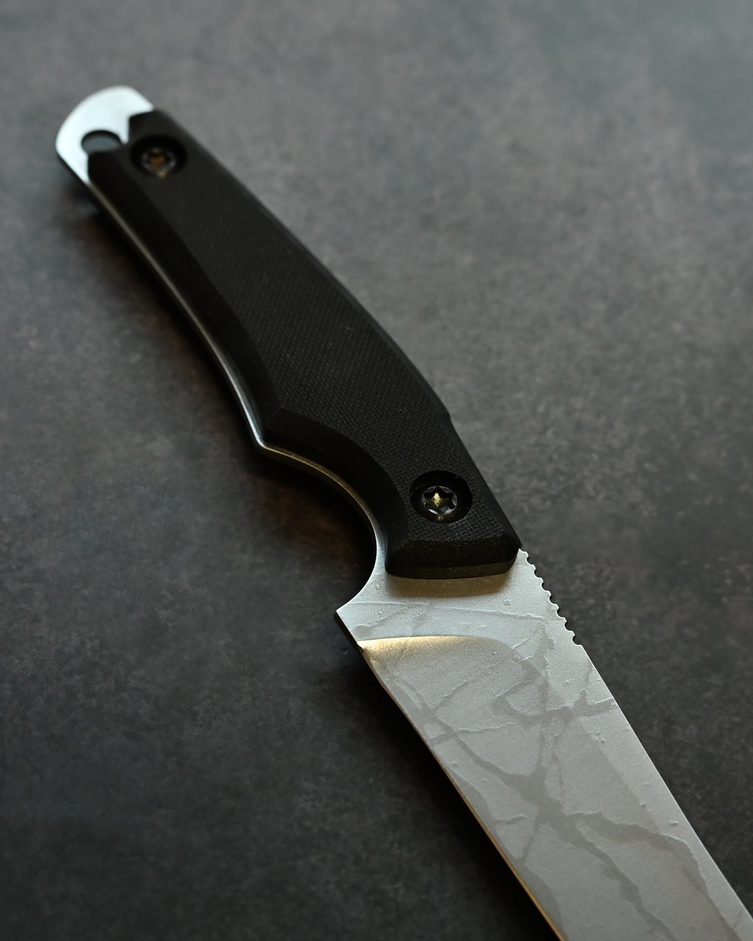 ハンドルは精密に削り出された ブラックG10 を使用し、優れたグリップ力と耐久性を実現。