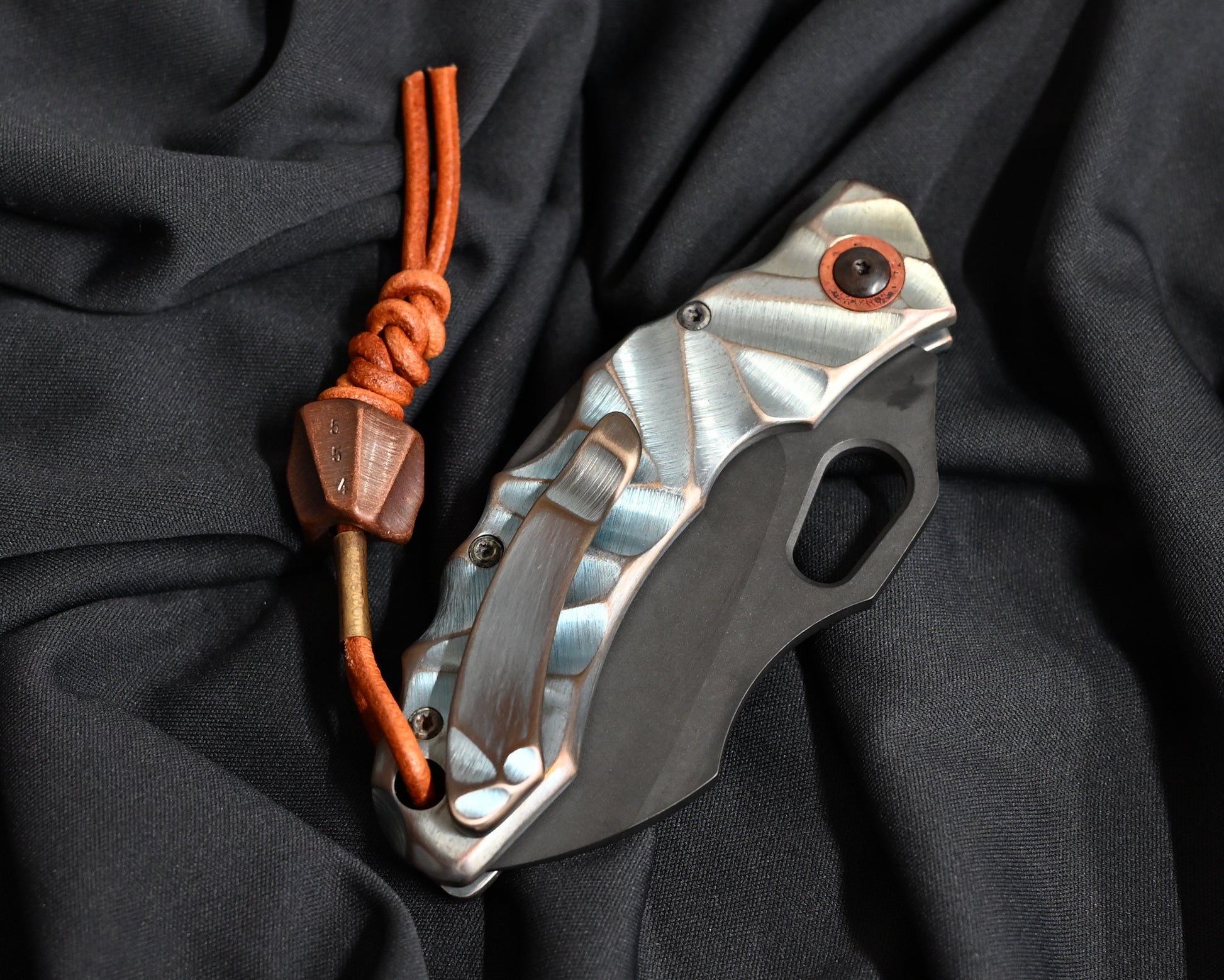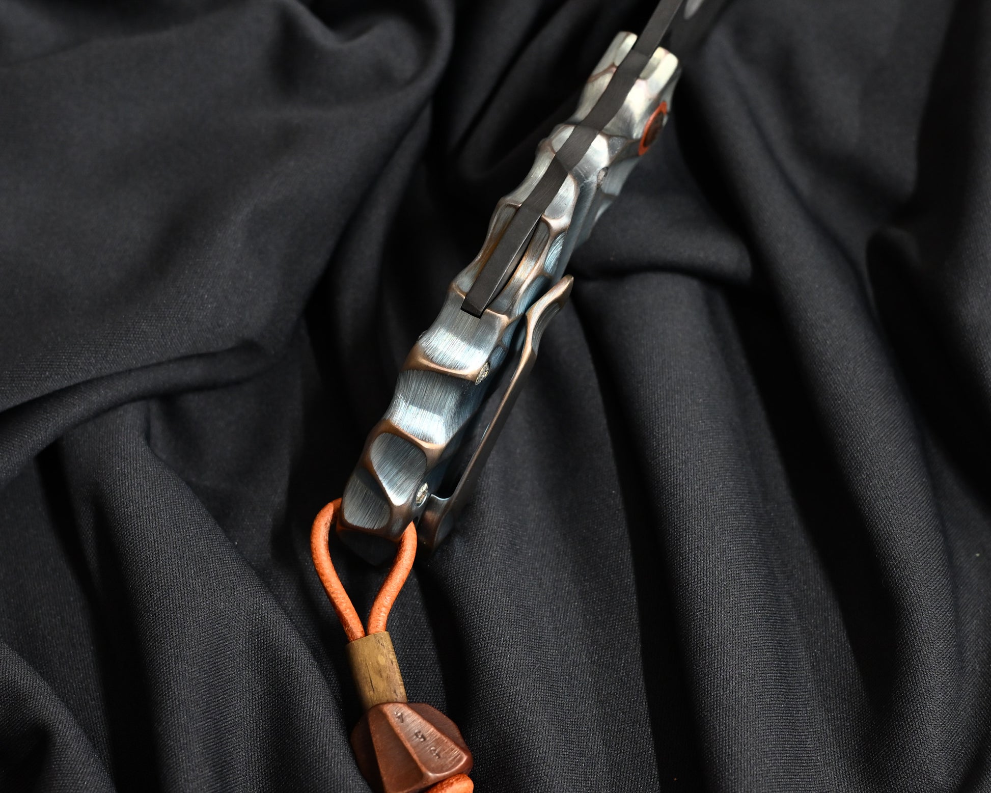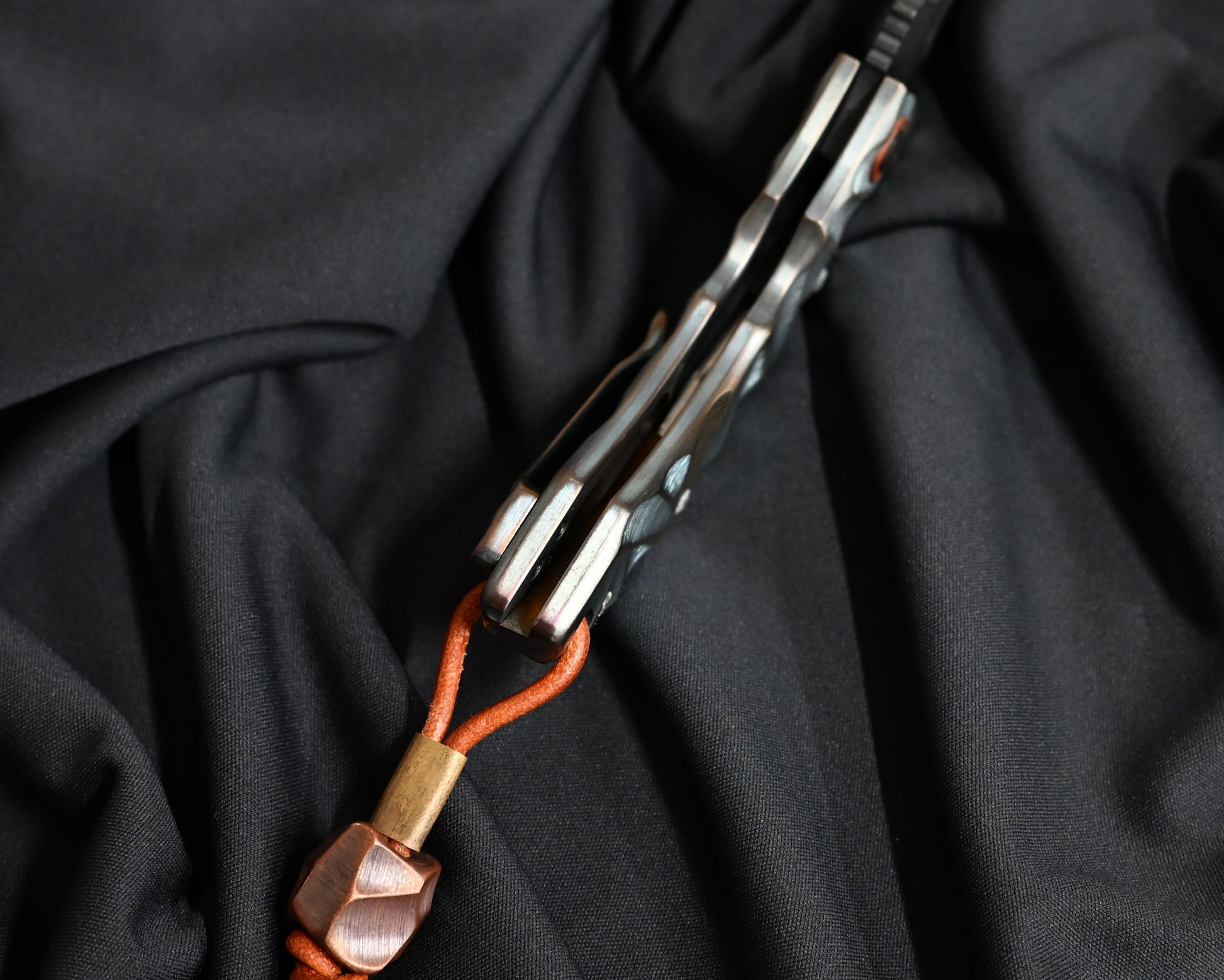 セラミックボールベアリングシステム により、極めてスムーズなブレード展開 を実現し、快適な操作性を提供します。すべてのネジや金具は TC4 チタン合金製 で、軽量かつ高強度 を両立。さらに、レッドコッパーナイフビーズ(銅製ナイフビーズ) を付属し、ヴィンテージ感とタクティカルな雰囲気を演出します。