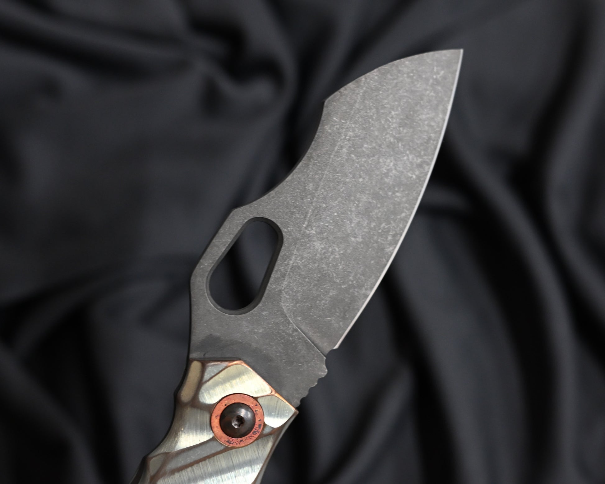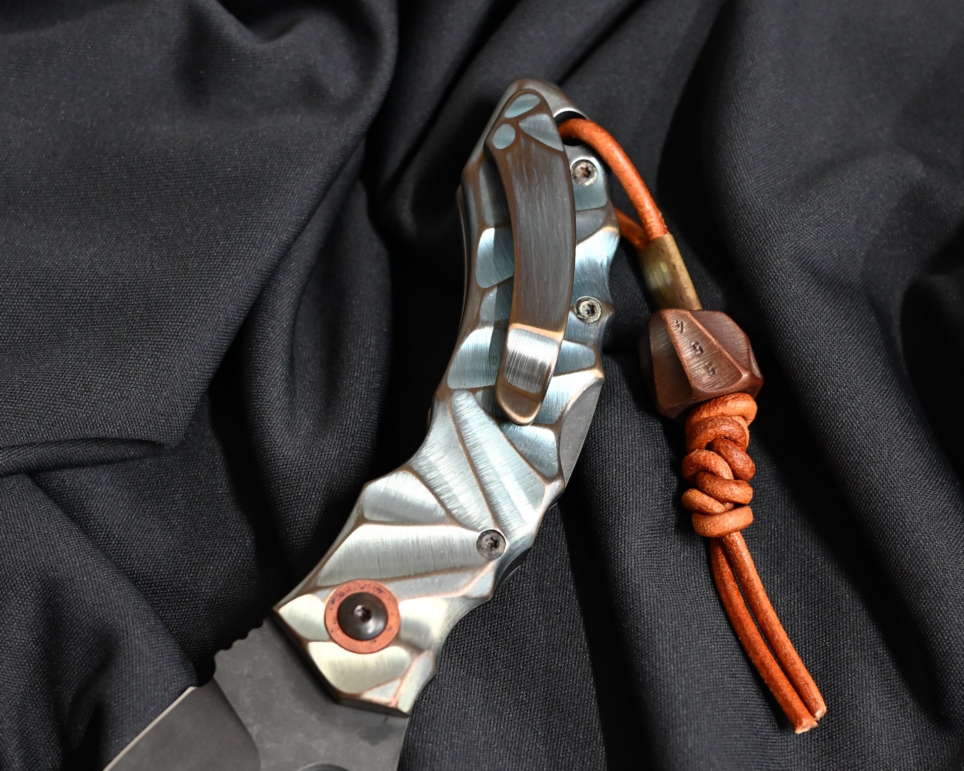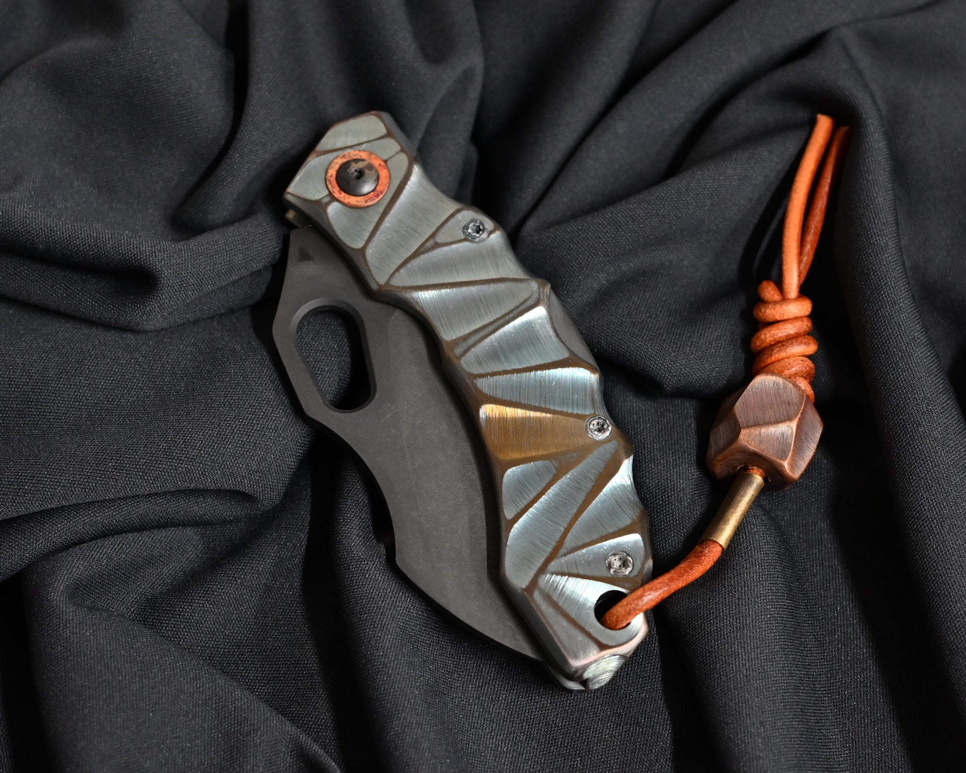 セラミックボールベアリングシステム により、極めてスムーズなブレード展開 を実現し、快適な操作性を提供します。すべてのネジや金具は TC4 チタン合金製 で、軽量かつ高強度 を両立。さらに、レッドコッパーナイフビーズ(銅製ナイフビーズ) を付属し、ヴィンテージ感とタクティカルな雰囲気を演出します。