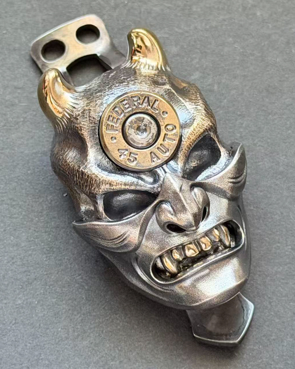Steel Flame ブロンズ XXXL 般若スカル シルバーマスク 45A インレイ フラッシュライトクリップ