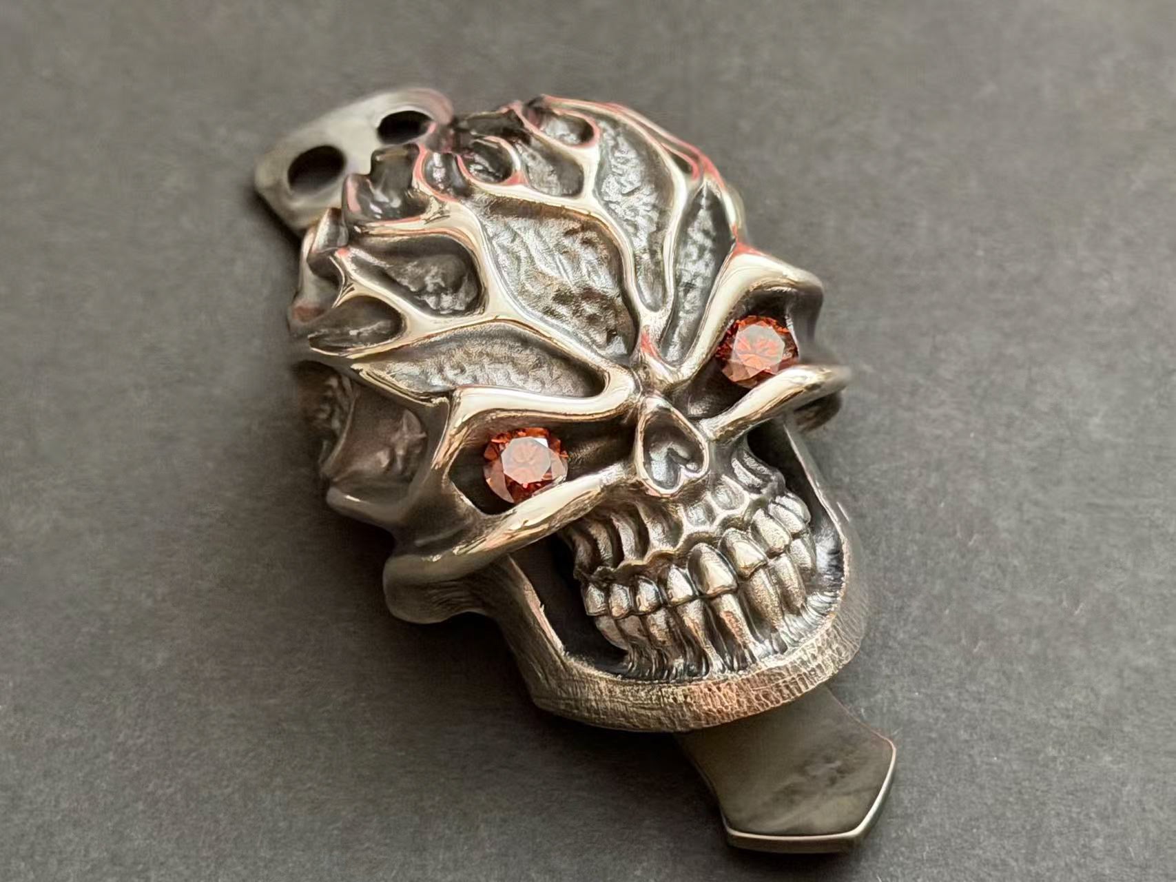 Steel Flame XXXL シルバー ダーク・リーパー スカル 多面カット・ルビーアイ フラッシュライトクリップ ワンオフ/直筆サイン