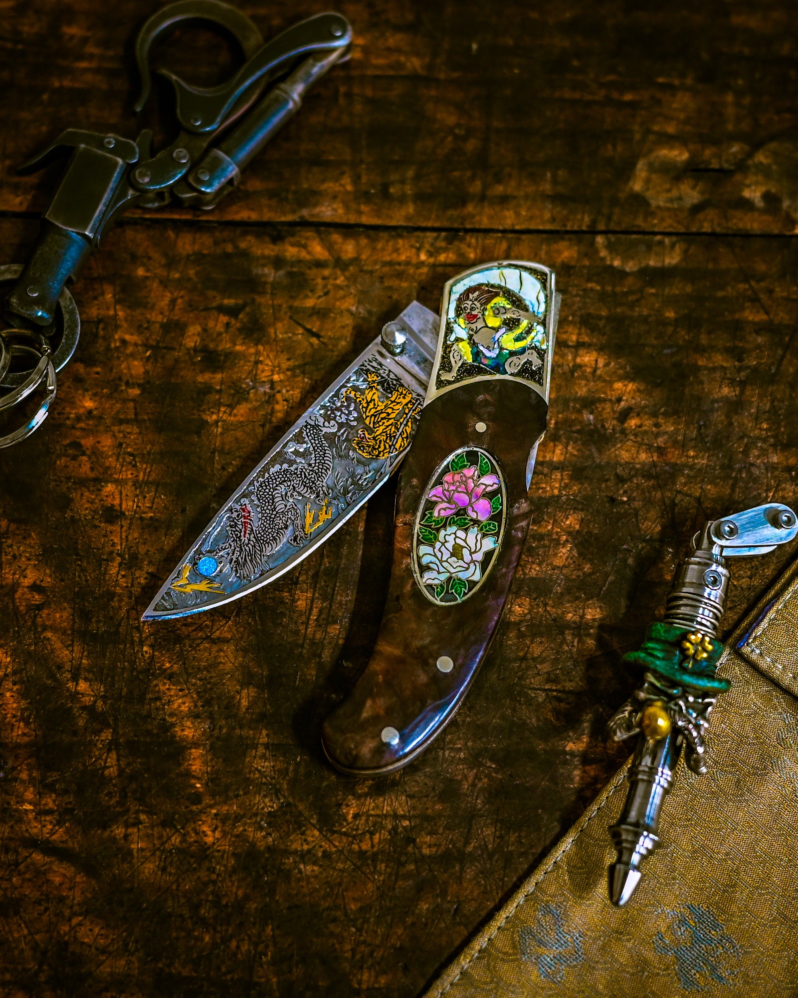 Katsuhiko Miura Raijin Fujin Hand-Carved EDC Folding Knife - Vintage Gentleman Style