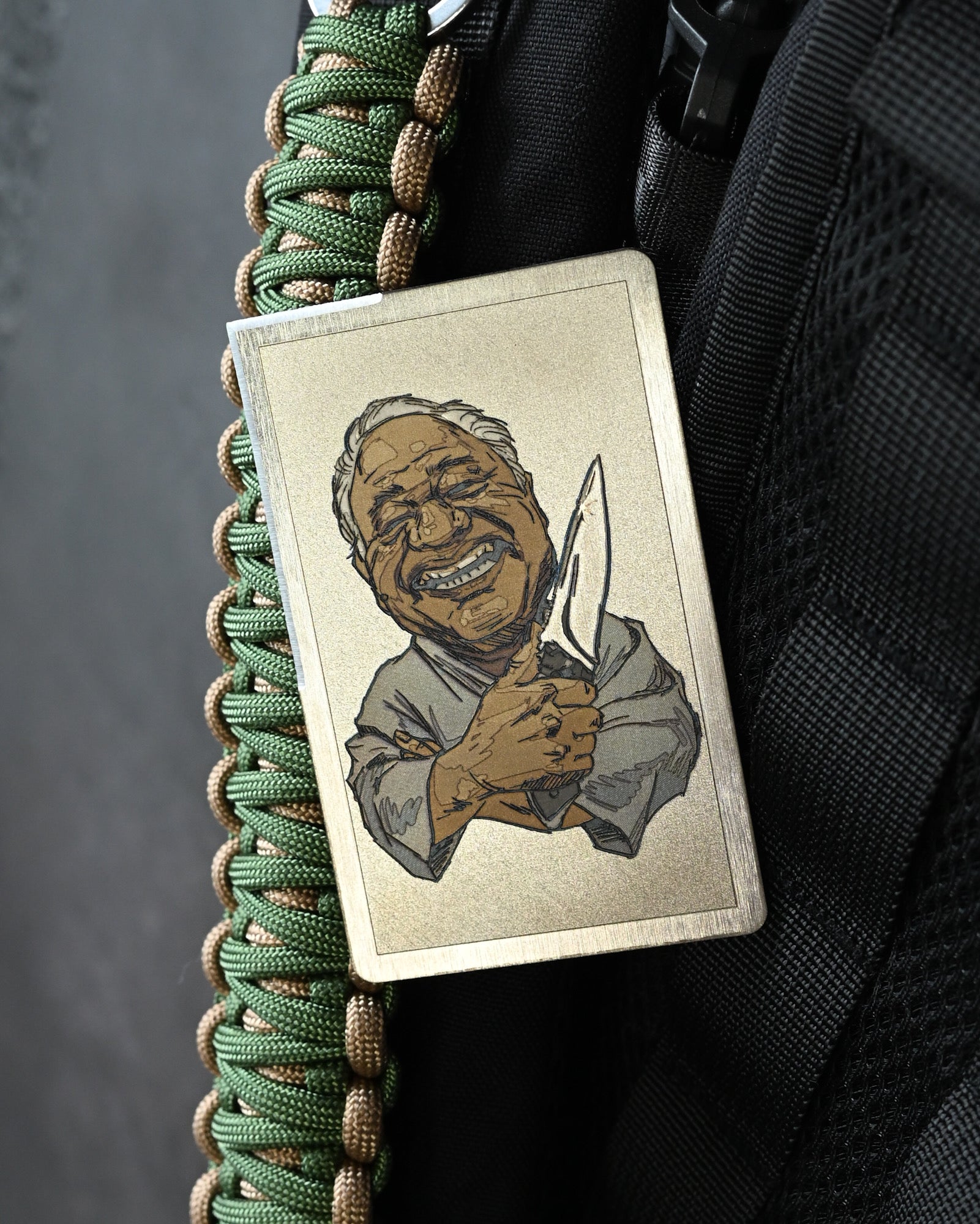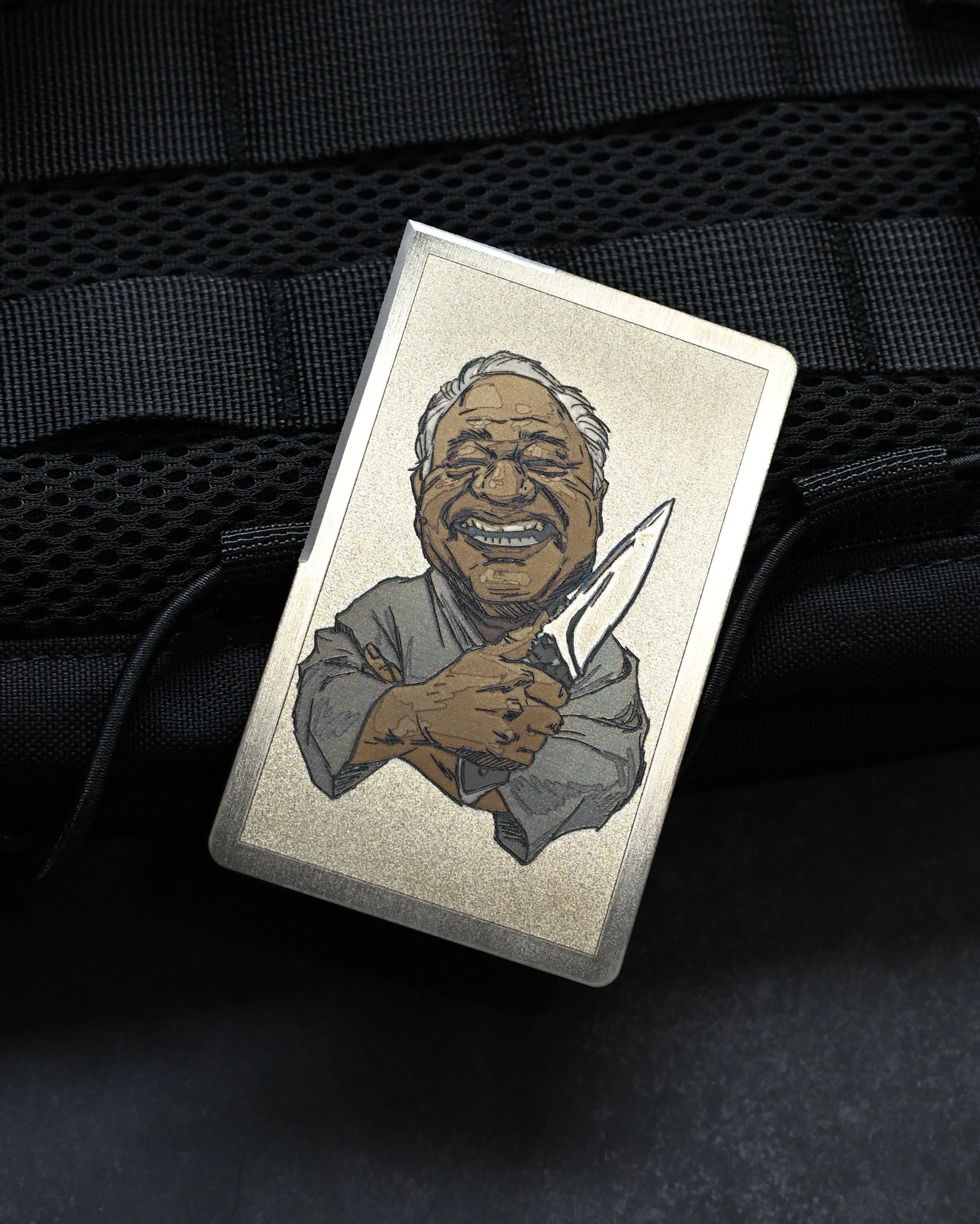 Crafted from titanium, the surface features fine engraving with a distinct artistic character. The edge is treated with tungsten carbide, providing outstanding durability and long-lasting sharpness.