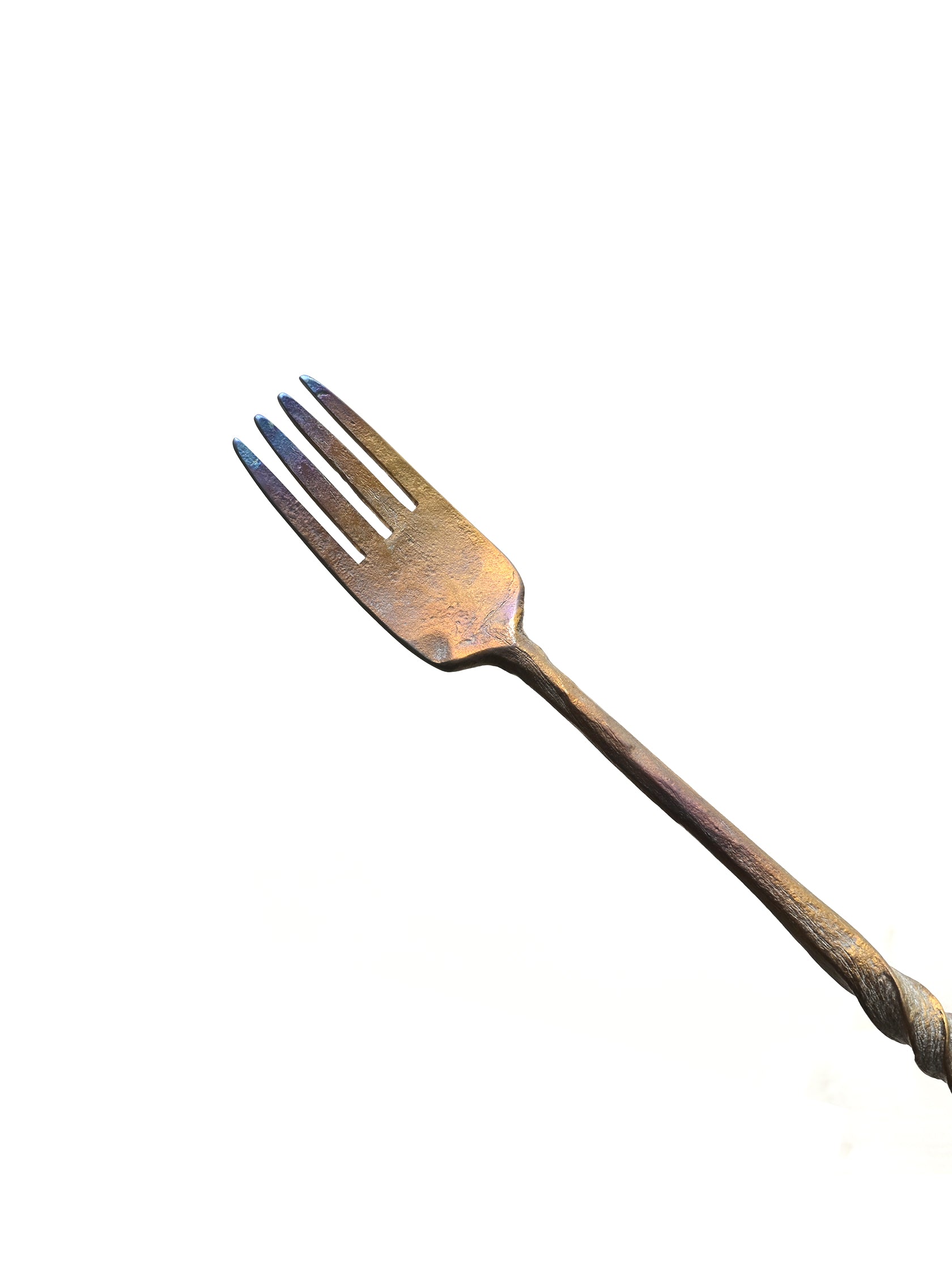 The hammered texture left by forging and polished surface provides a soft and smooth feel, creating a gradient of colors from deep blue and light blue like the ocean, to purple like twilight, and gold-brown like a sunrise, with no two items being identical.