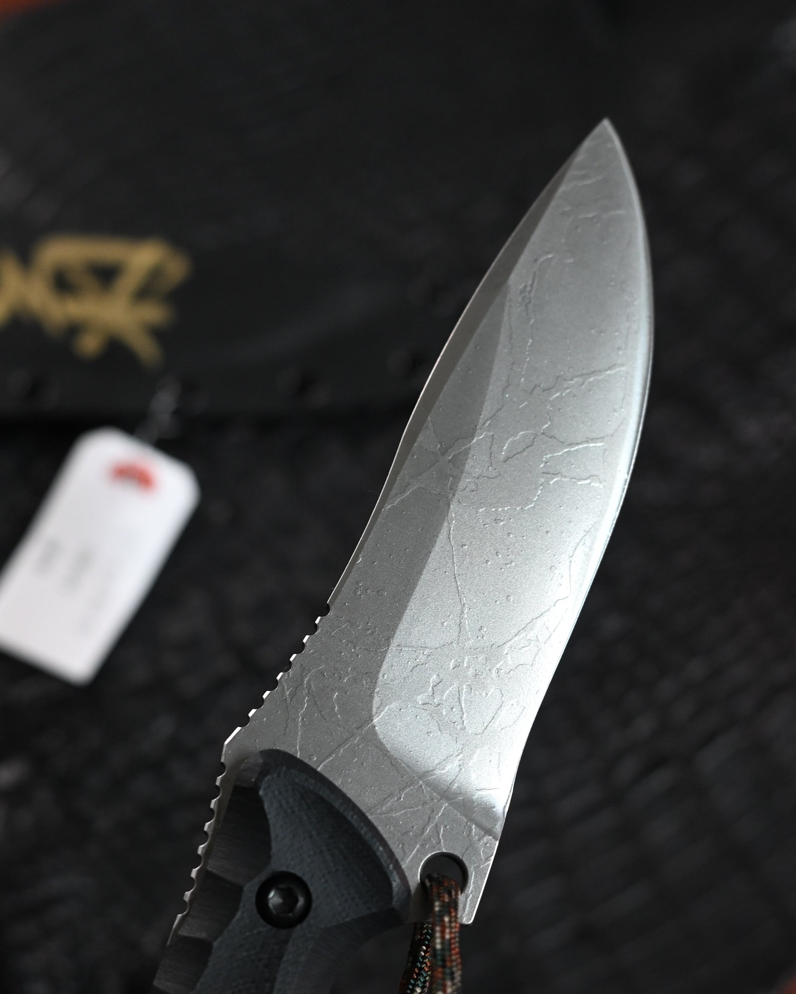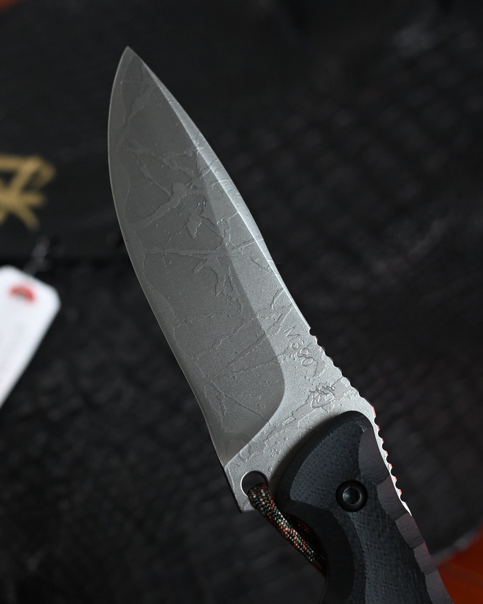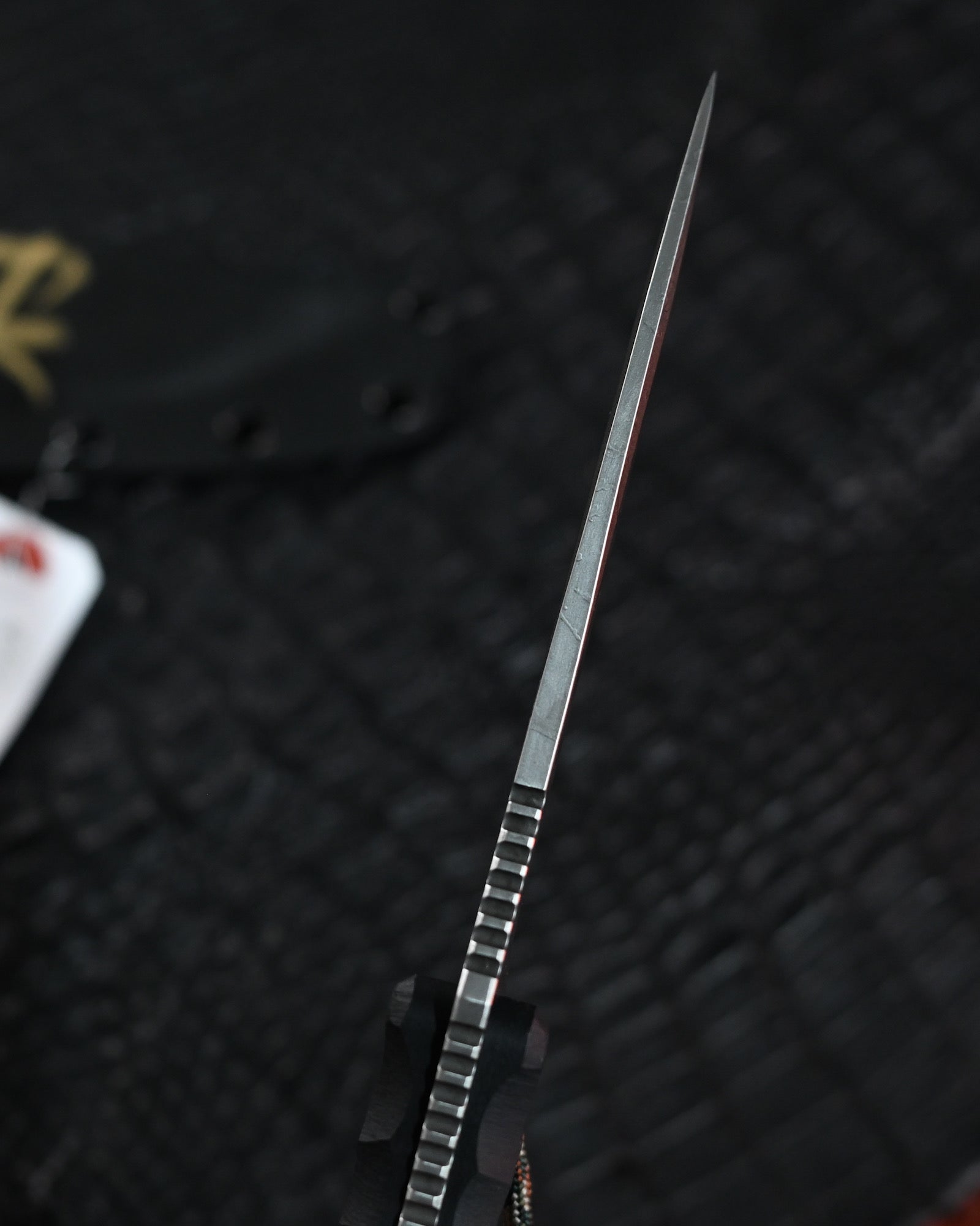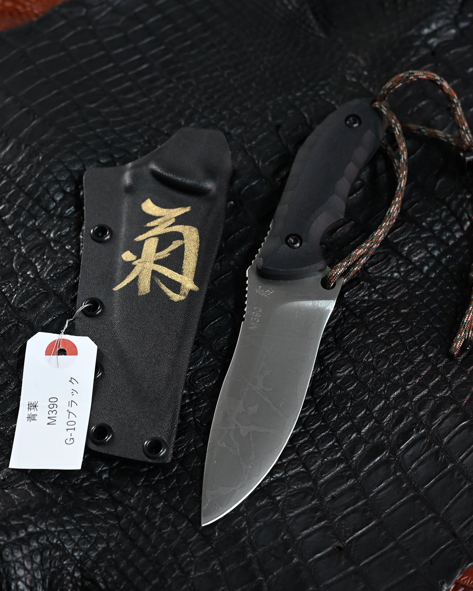 The “Aoba” is a finely crafted outdoor fixed-blade knife designed by Japanese artisan Kiku Matsuda (kiku knives). It features a M390 steel blade, approximately 4mm thick, renowned for its exceptional edge retention and durability. Measuring about 220mm in overall length with a 112mm blade, the knife weighs only around 248g including its sheath, striking the ideal balance between portability and power. The G-10 black handle offers excellent grip, impact resistance, and long-lasting comfort. Whether you’re heading out for wilderness adventures, tactical missions, or professional cooking, the Aoba exemplifies Kiku Matsuda’s dedication to precision craftsmanship and superior performance.