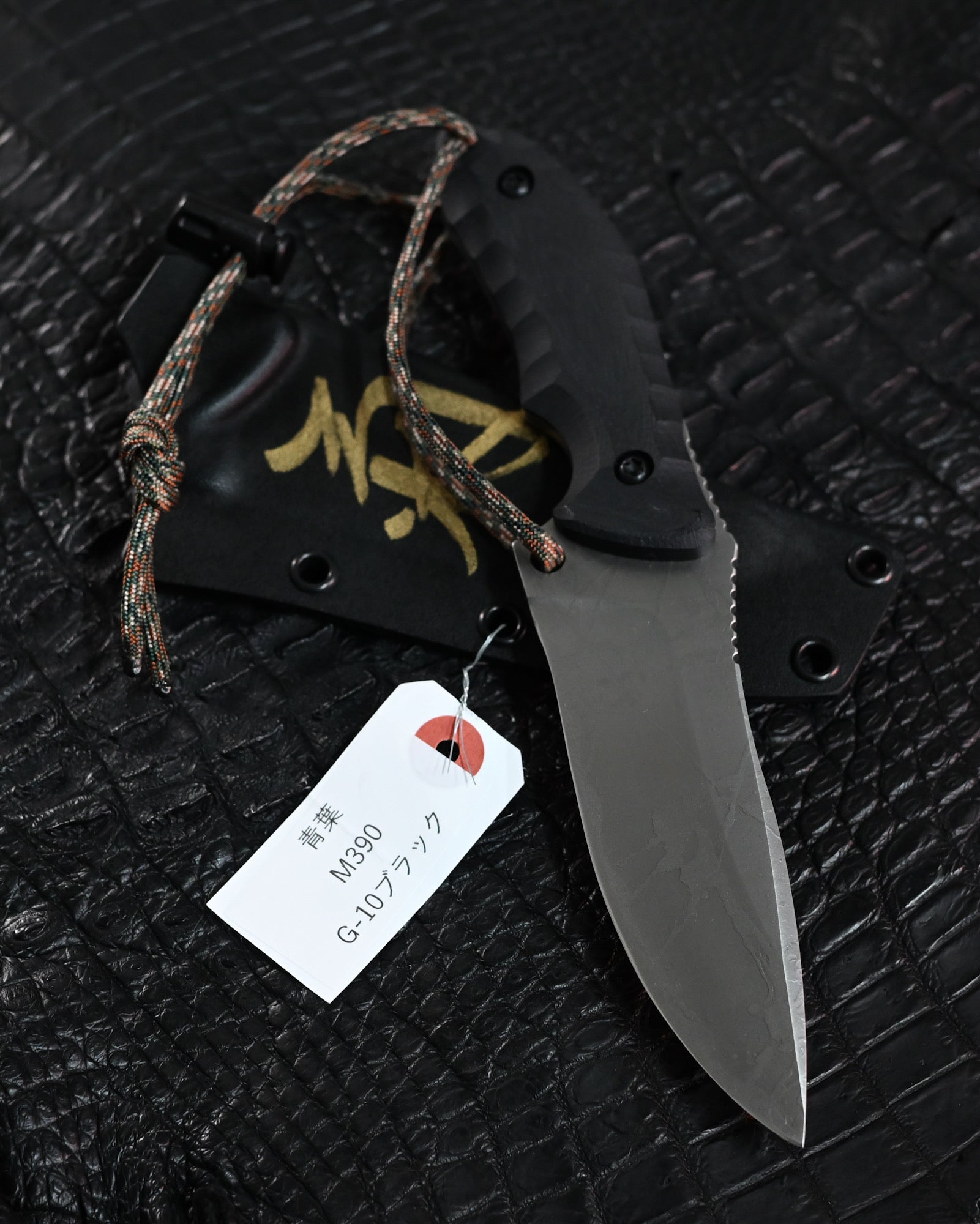 Aoba | M390 Outdoor Fixed Blade Knife | G-10 Black Handle Kiku Knives by Kiku Matsuda