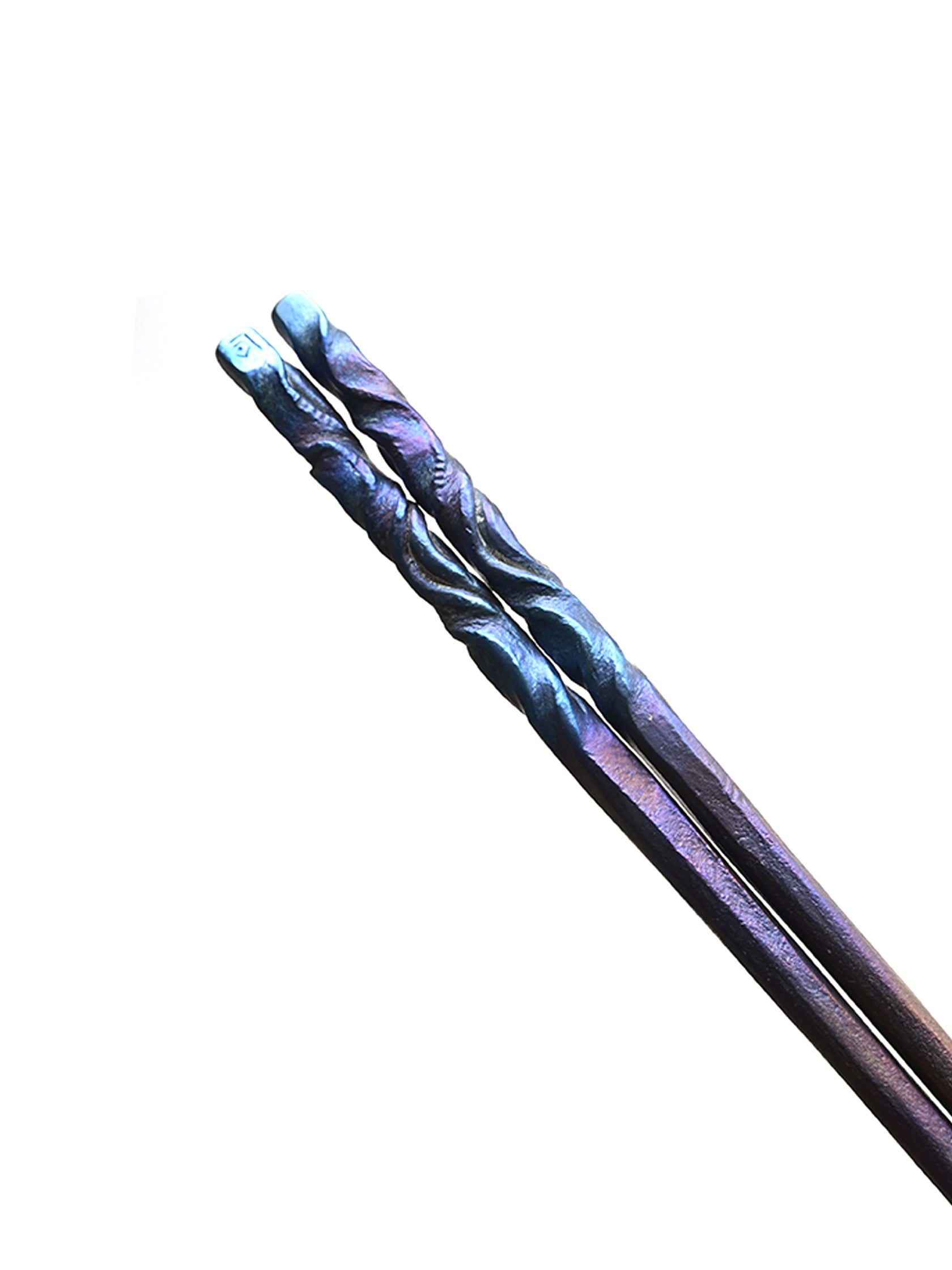 The hammered texture left by forging and polished surface provides a soft and smooth feel, creating a gradient of colors from deep blue and light blue like the ocean, to purple like twilight, and gold-brown like a sunrise, with no two items being identical.