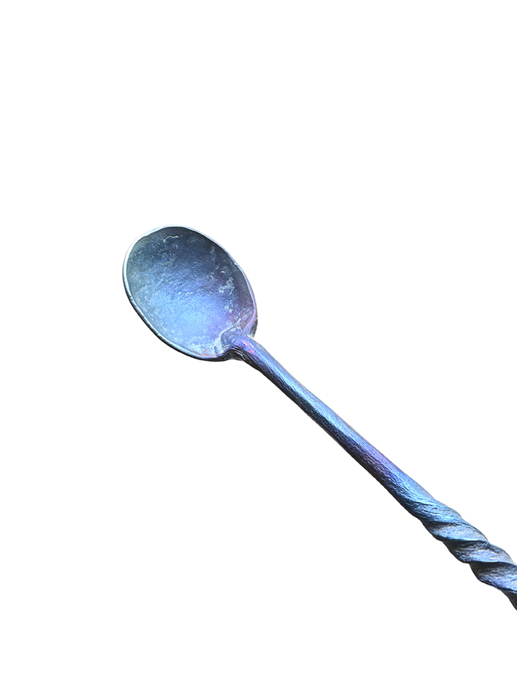 The hammered texture left by forging and polished surface provides a soft and smooth feel, creating a gradient of colors from deep blue and light blue like the ocean, to purple like twilight, and gold-brown like a sunrise, with no two items being identical.