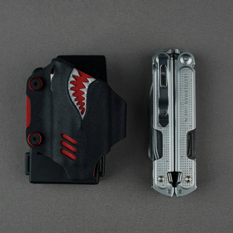 Handcrafted by QIWAN, this Shark FREE P4 polyester toolkit sheath features a quick-pull design for both convenience and functionality. The innovative waist clip structure allows for single-handed side opening and locking, easily adjusting to different belt widths for secure and reliable wear during daily or outdoor use. Made from 1.5mm thick polyester sourced from the USA, this sheath is built with a multi-layer structure and crafted with precision through detailed carving and polishing, combining durability with a sleek, modern aesthetic.
