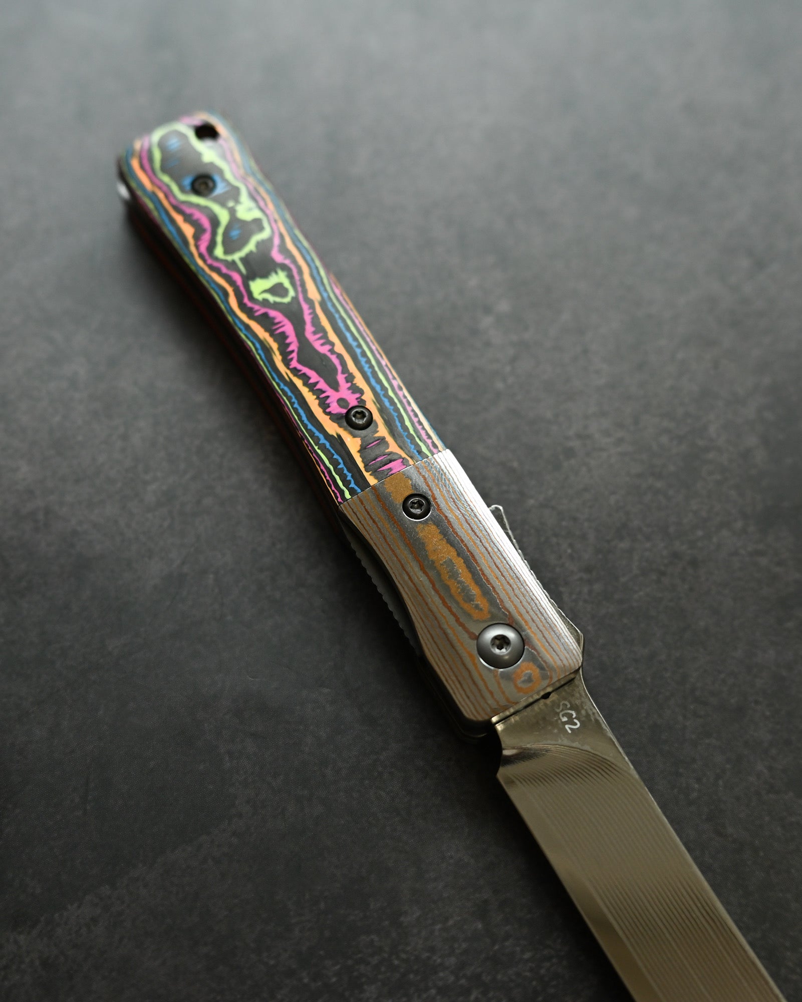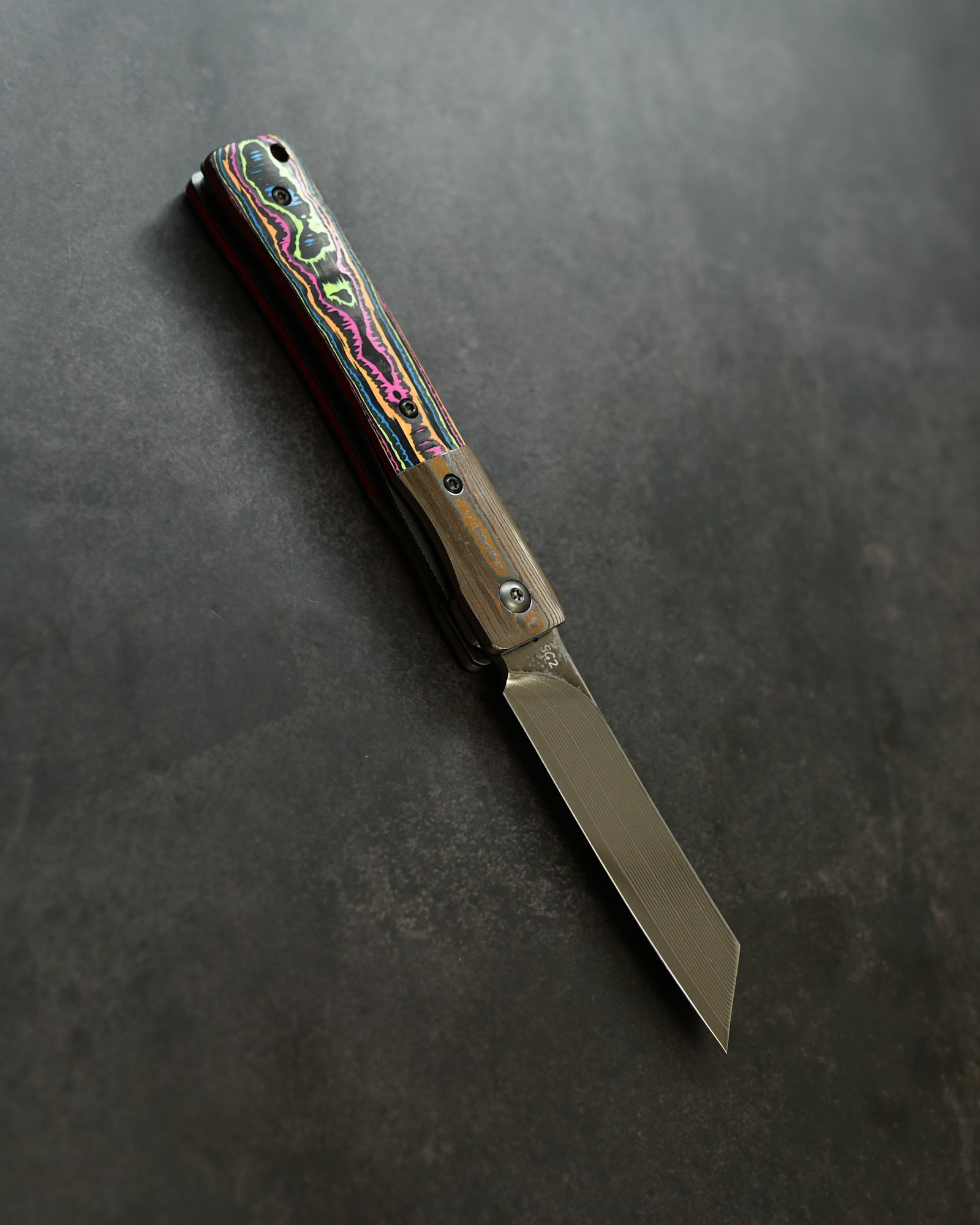 Haoworks Design Eirou Japan SG2 Laminated Steel Folding Knife Neon Lava Handle
