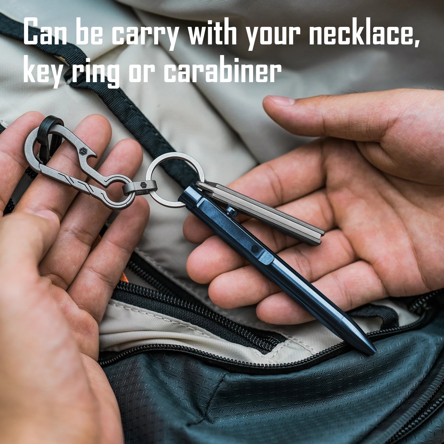 - Design for EDC:This metal pen is reserved a hole for quick and easy access, can be carry with your necklace, key ring or carabiner. A pen clip is included to keep the titanium pen handy at all times.