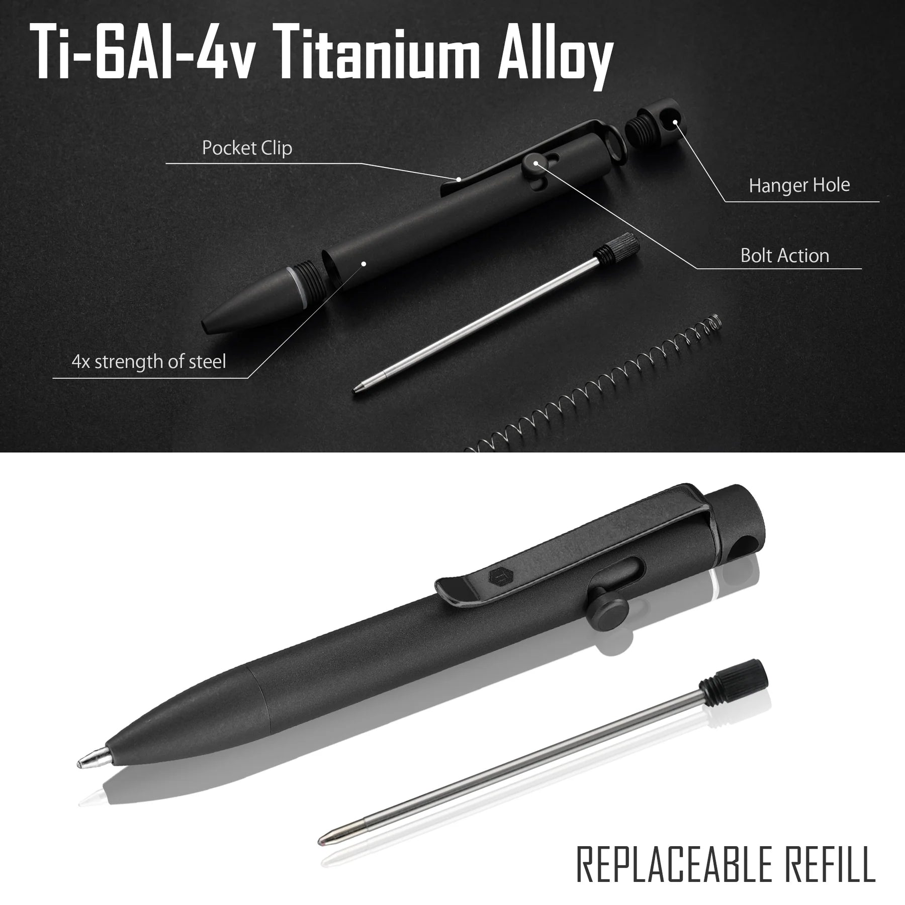 Design for EDC:This metal pen is reserved a hole for quick and easy access, can be carry with your necklace, key ring or carabiner. A pen clip is included to keep the titanium pen handy at all times.