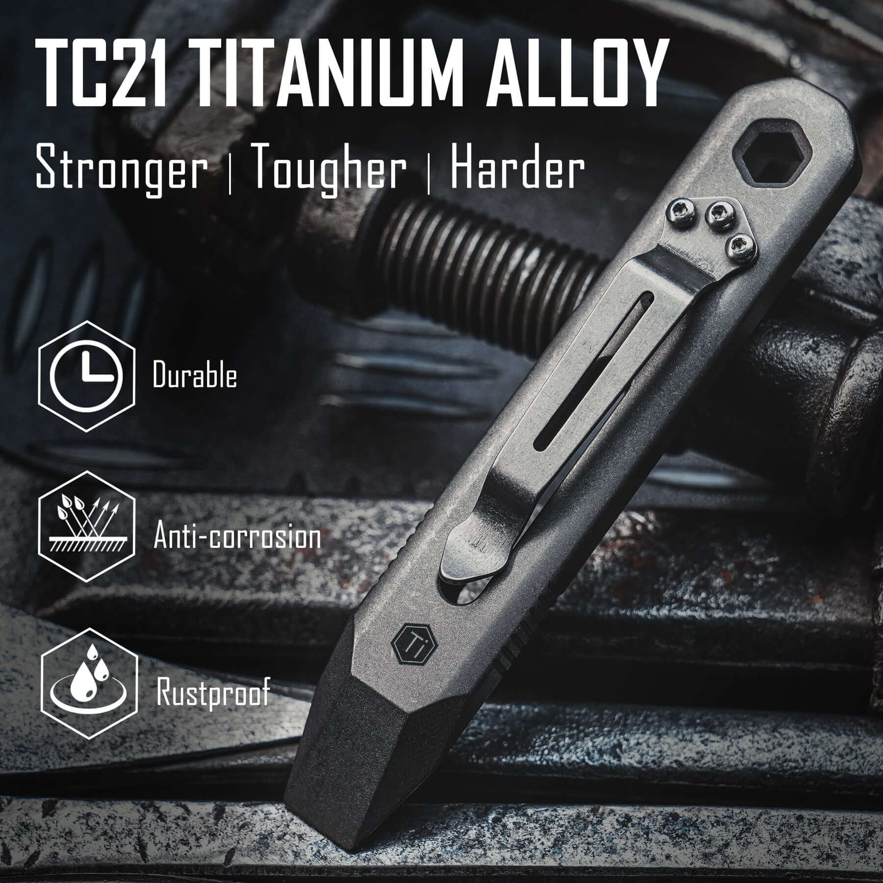 High-Quality Manufacturing: CNC-machined from high-hardness TC21 titanium alloy, with a sandblasted stonewashed finish on the surface, this pry bar boasts an exquisite appearance and a comfortable feel.