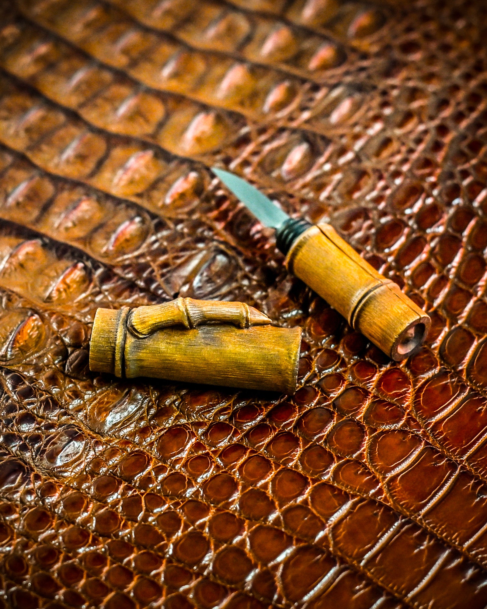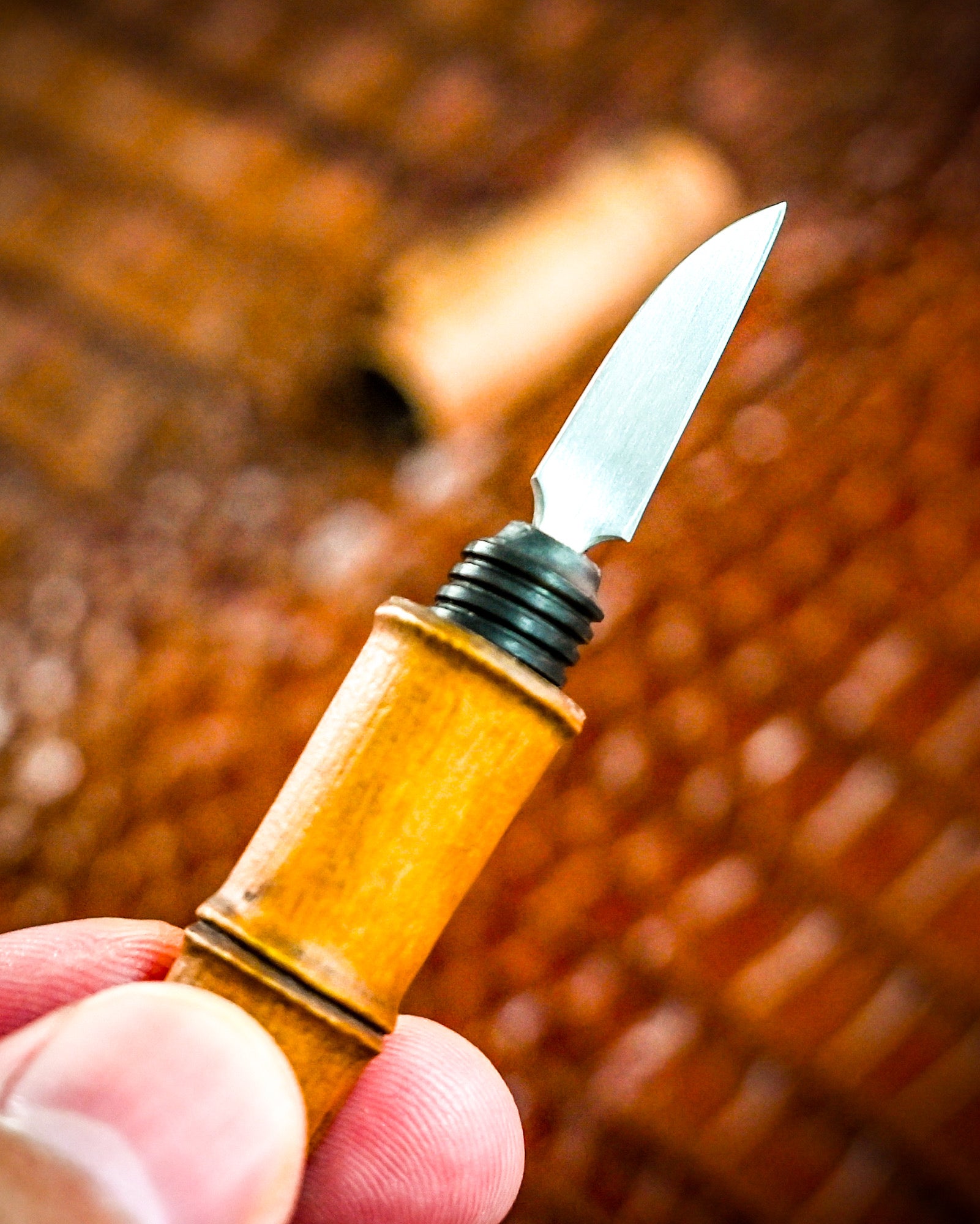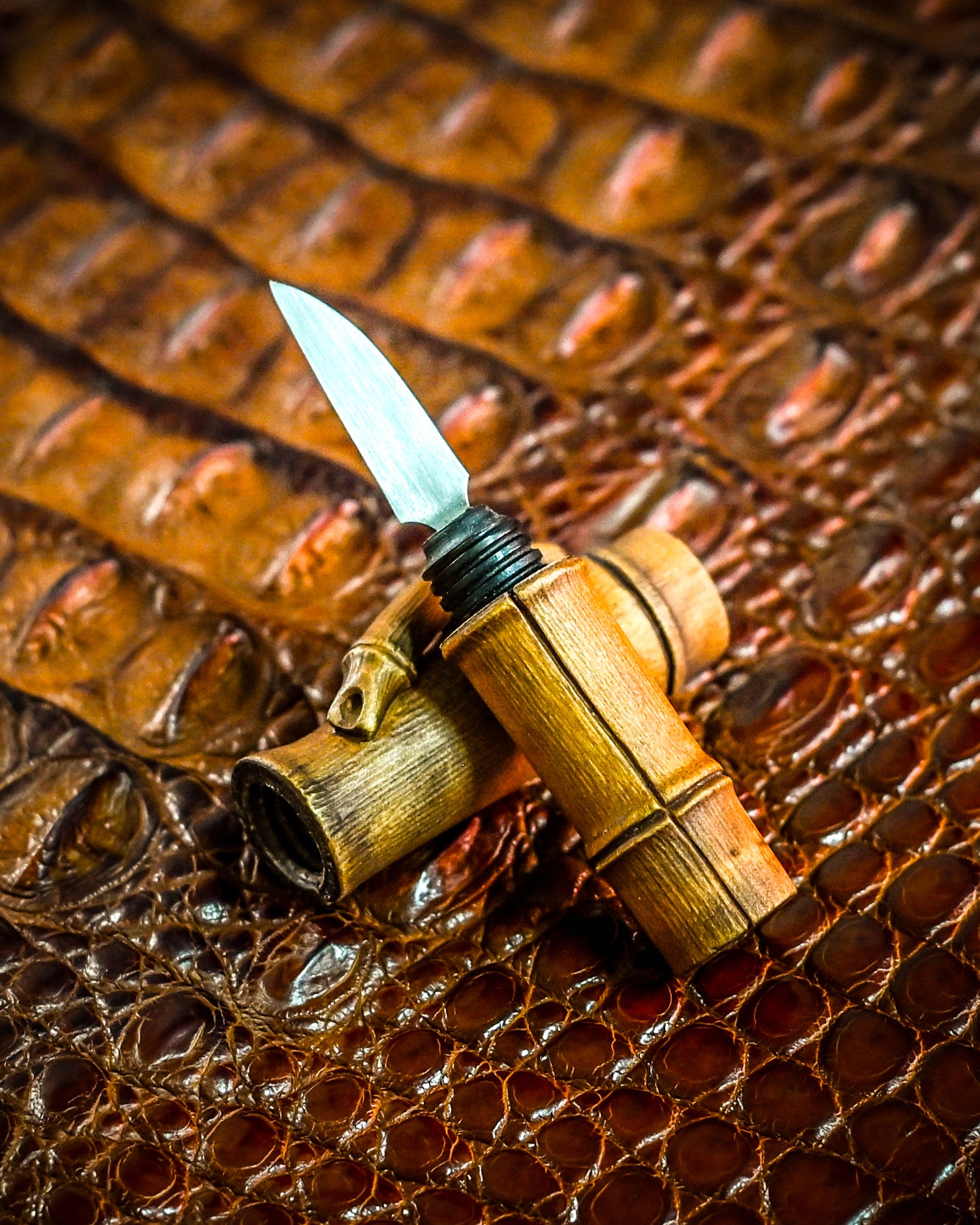 At first glance, it looks like a simple carbon rod. But twist it open, and you’ll discover a finely crafted blade hidden inside — the work of Japanese master artisan Hidetoshi Nakayama, known for blending playfulness with precision.