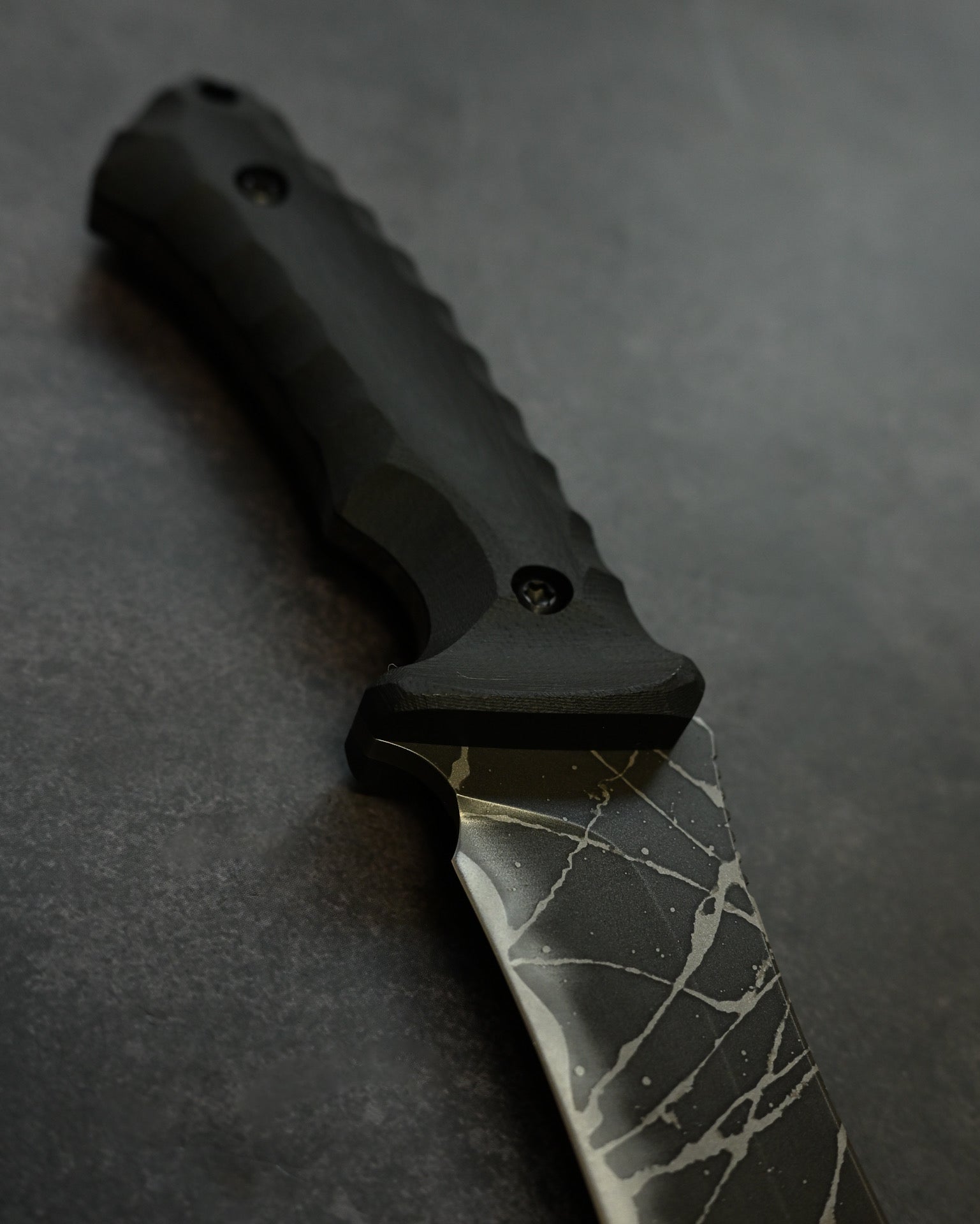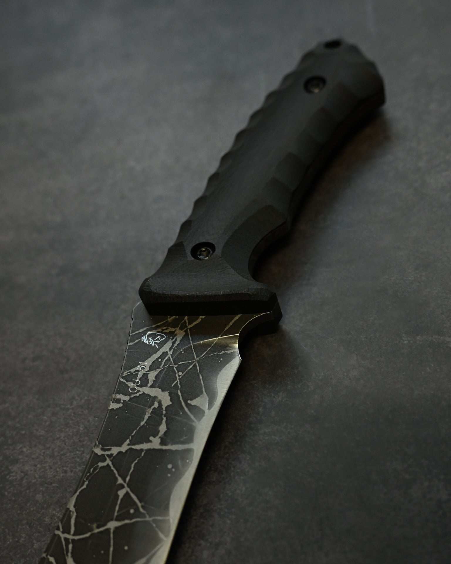 Black G10 handle — textured, sculpted, and highly slip-resistant