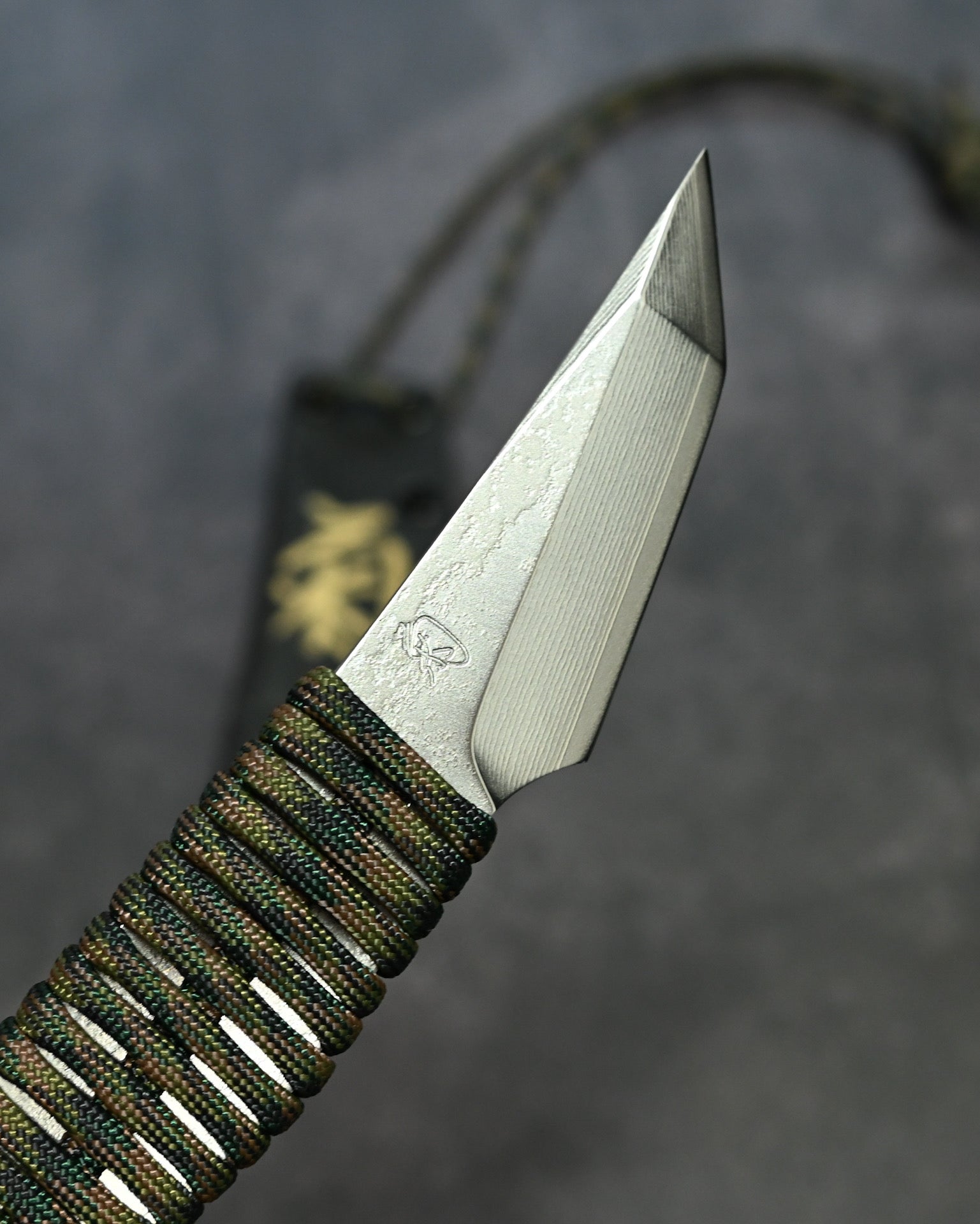 G10 handle wrapped with paracord for secure grip
