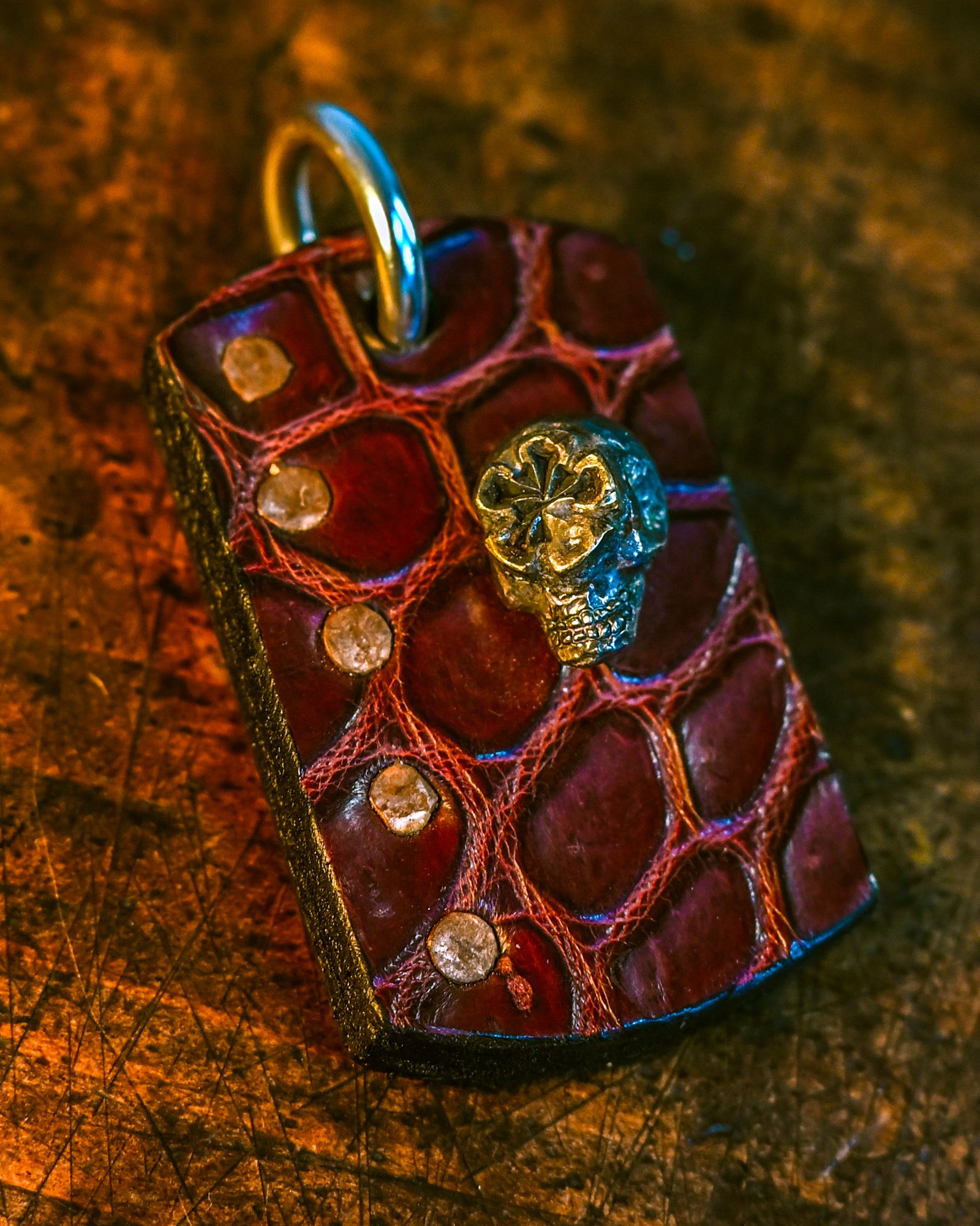 Made in Japan - Wtopia Works Handmade 925 Silver, Alligator & Bear Leather Pendant, Dog Tag Style