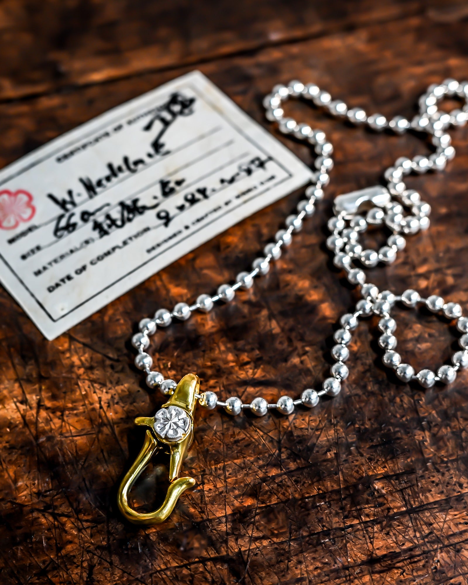 This 925 silver chain by Japanese artisan brand Wtopia Works combines refined craftsmanship with practical design. Measuring 0.2 inches (5 mm) in diameter and 26 inches (660 mm) in total length, it pairs seamlessly with various pendants. The unique brass hook, adorned with a silver ginkgo flower, adds a vintage elegance and is designed for attaching pendants or dog tags, balancing functionality with beauty.