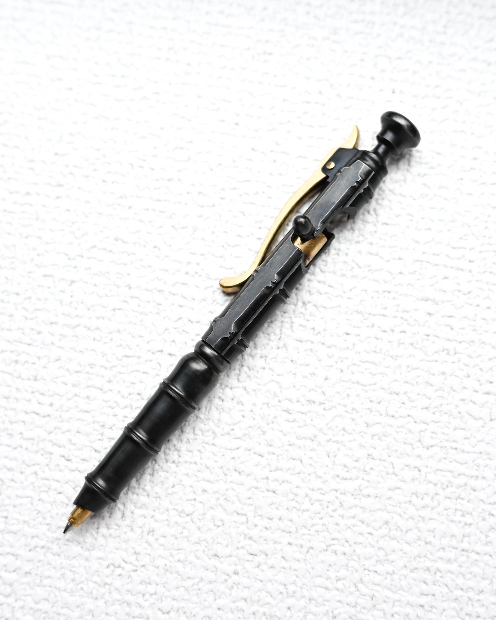 Nakayama Hideotoshi Handmade Tactical Pen – Bolt Action | Blackened Stainless Steel + Brass Accents | Bamboo-Inspired Design