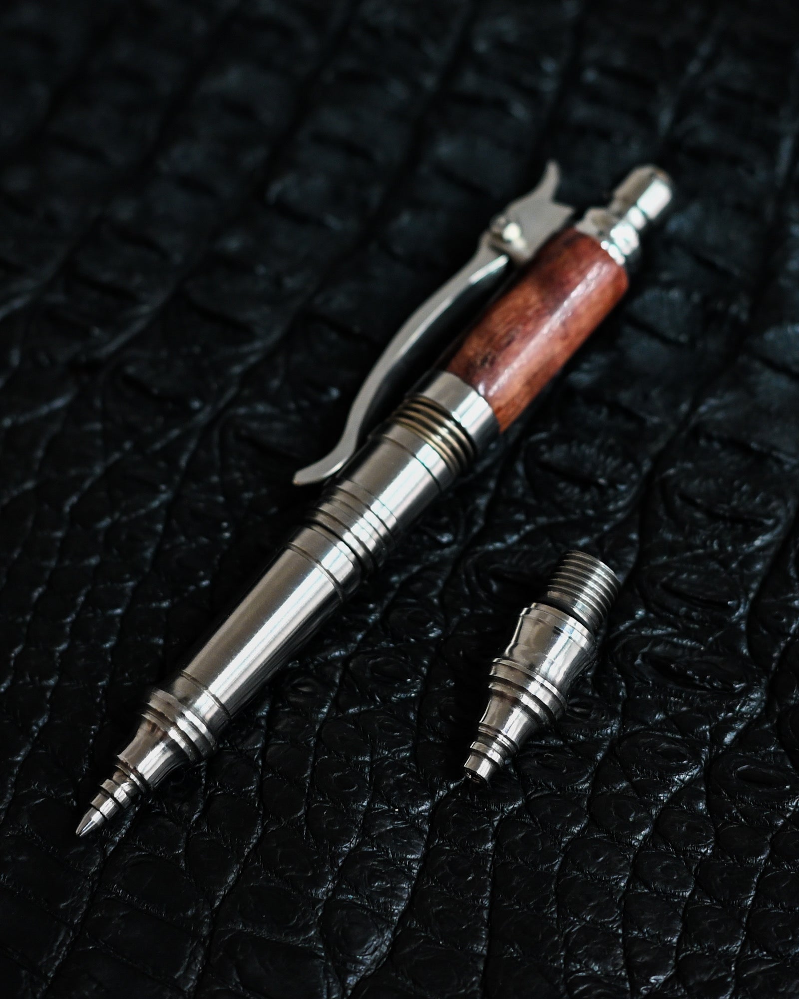 Nakayama Hidetoshi Handmade Tactical Pen Set – Stainless Steel × Burlwood (Modular Long & Short Config)