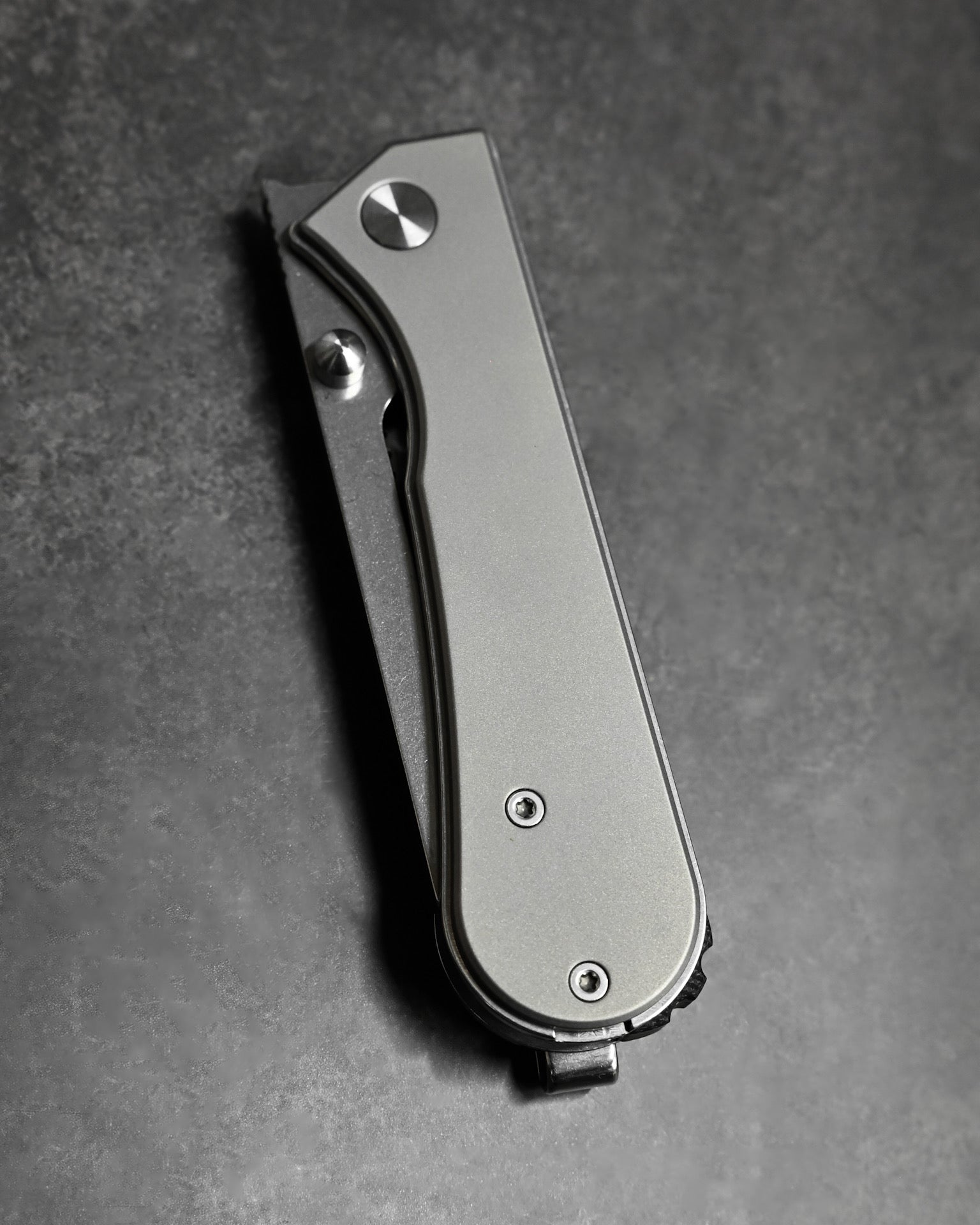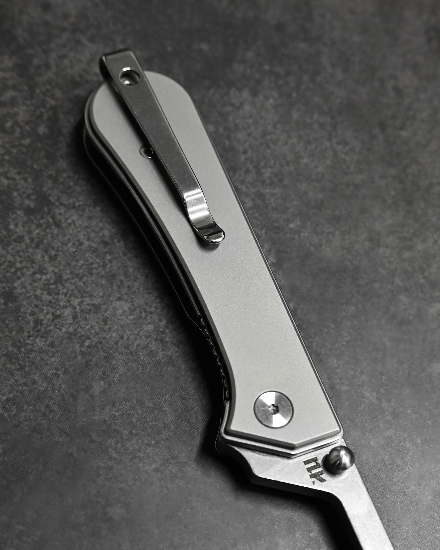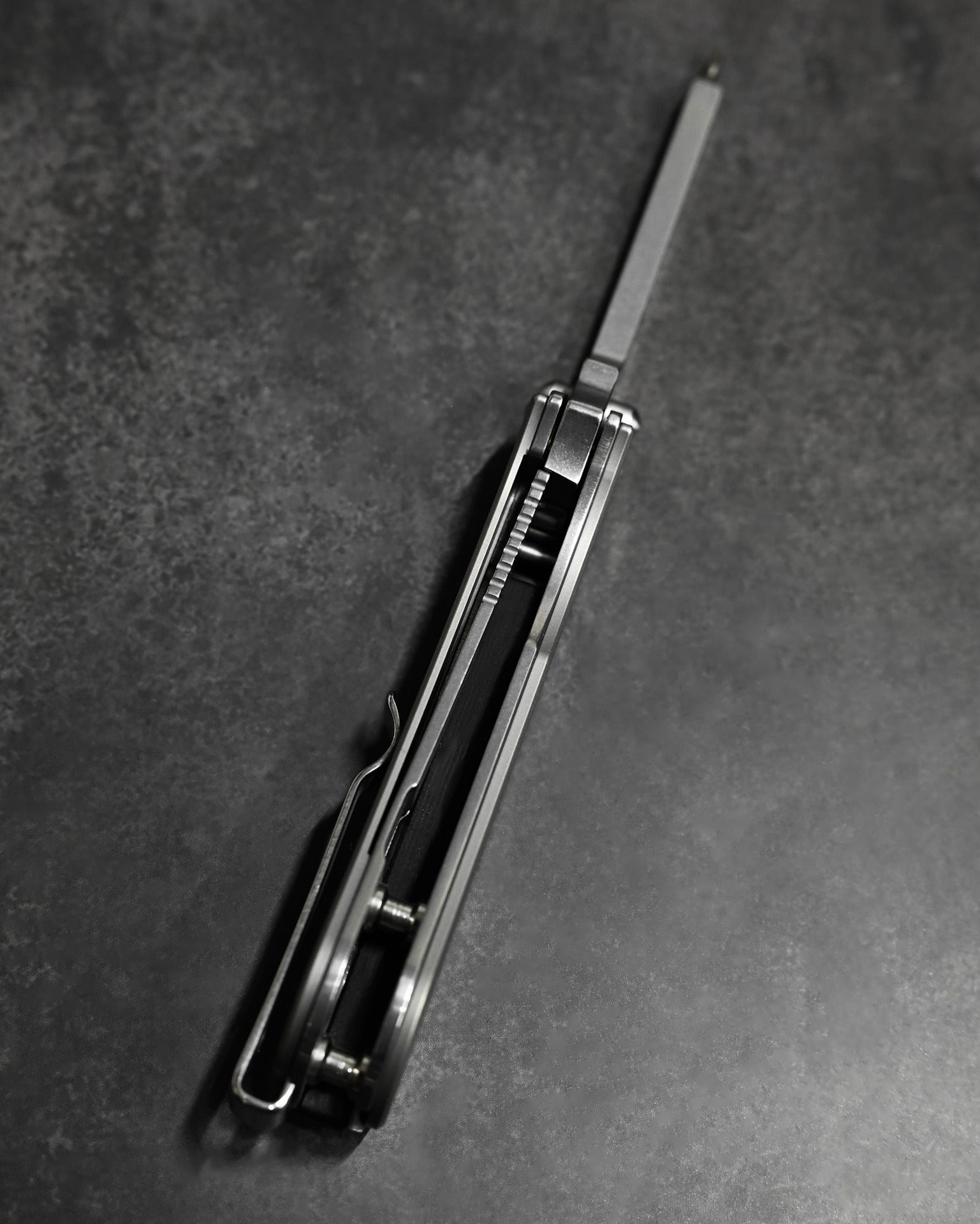 The titanium alloy handle offers a comfortable grip while keeping overall weight low for daily carry.