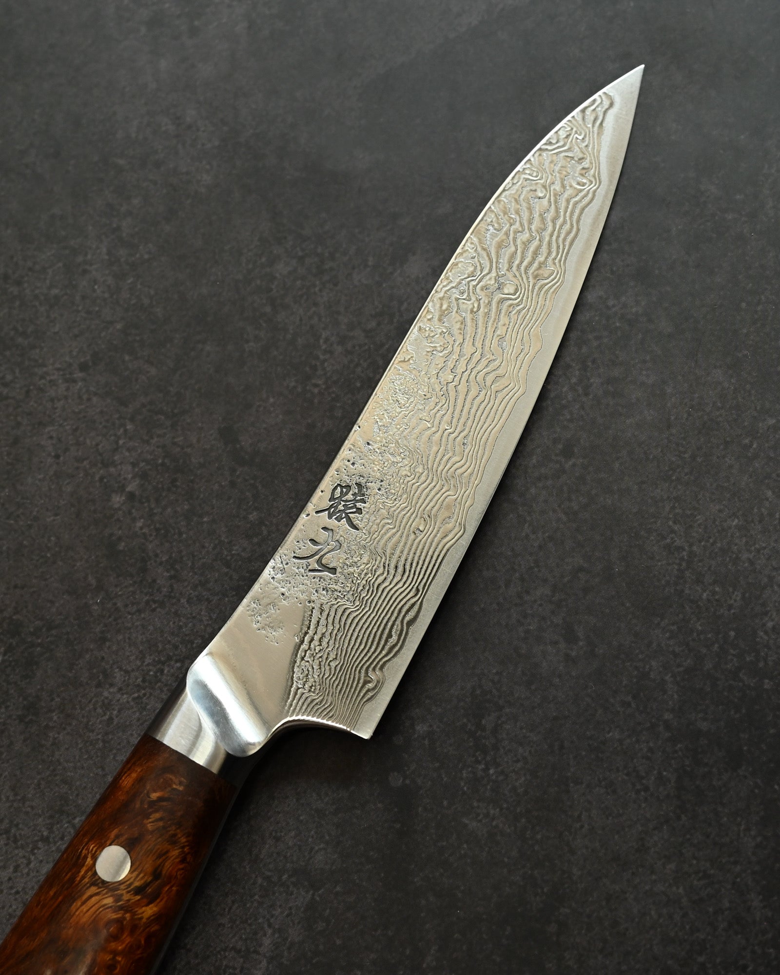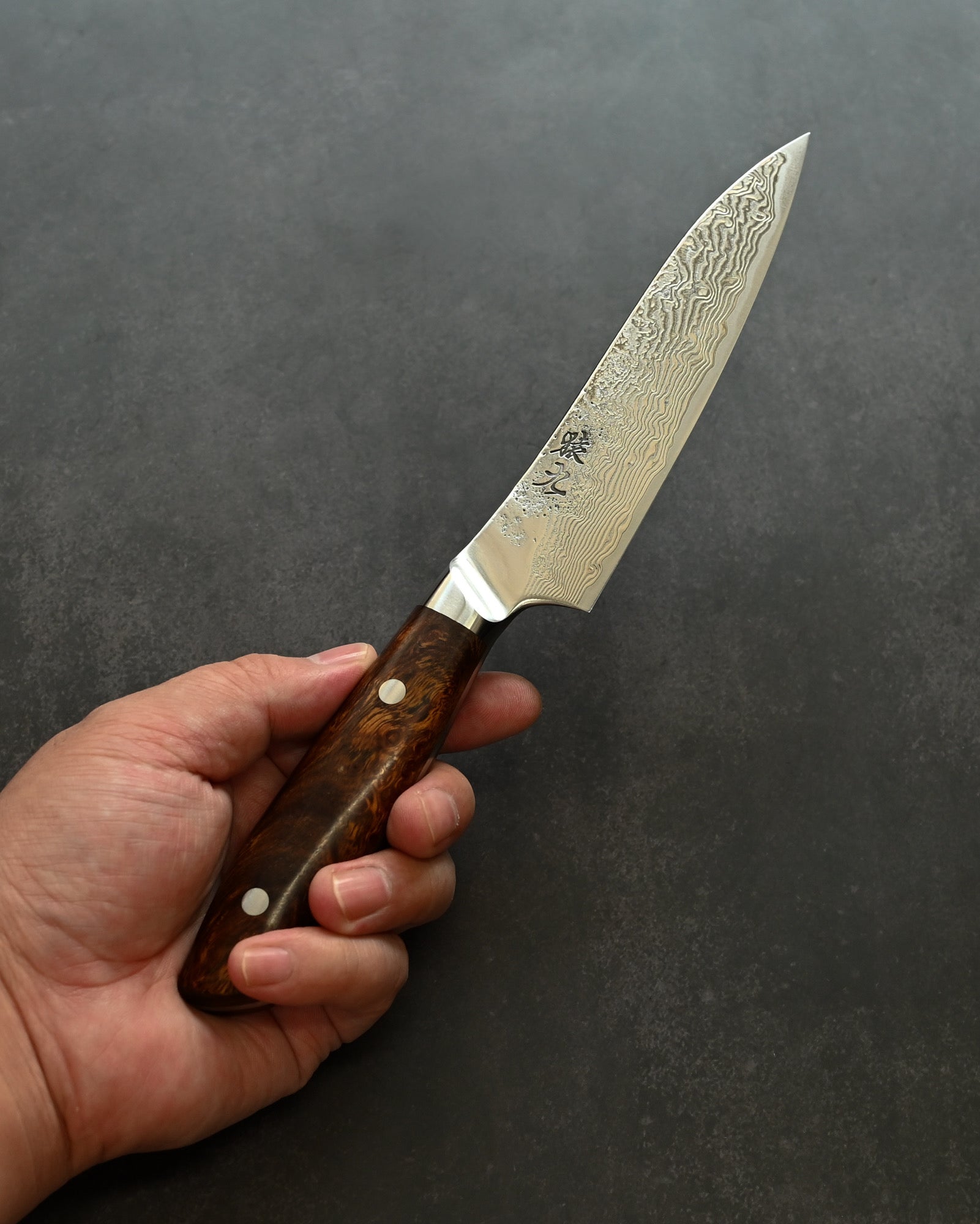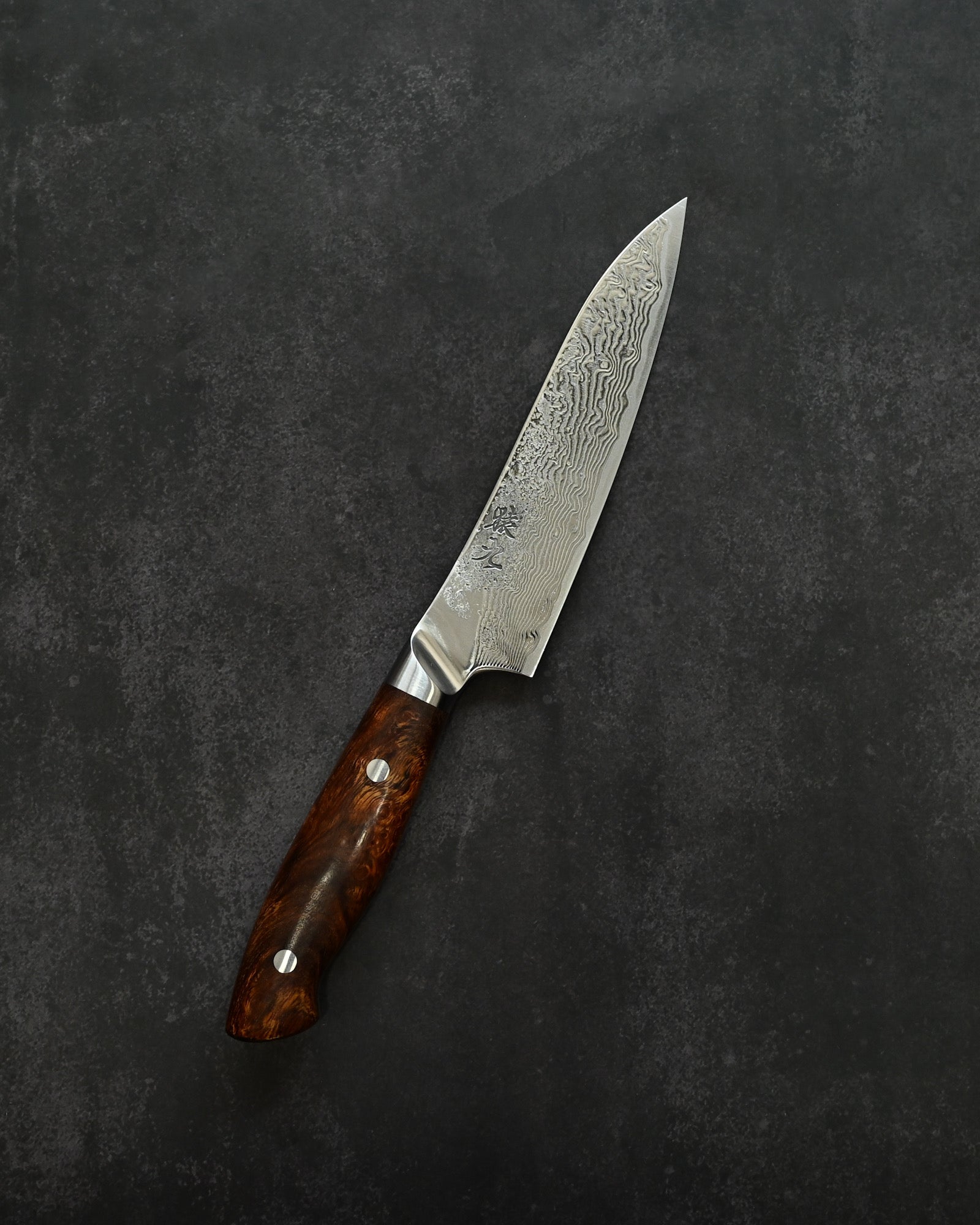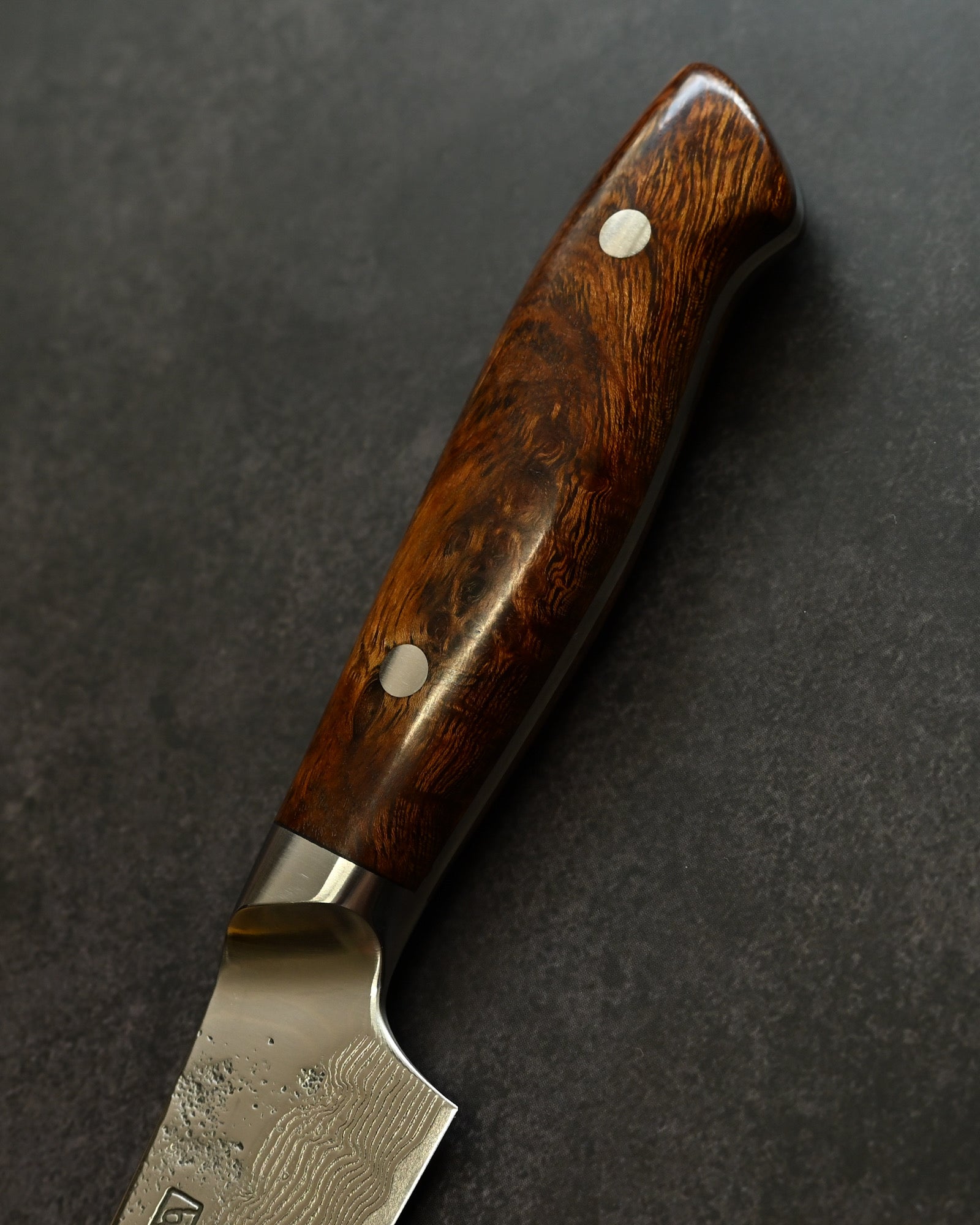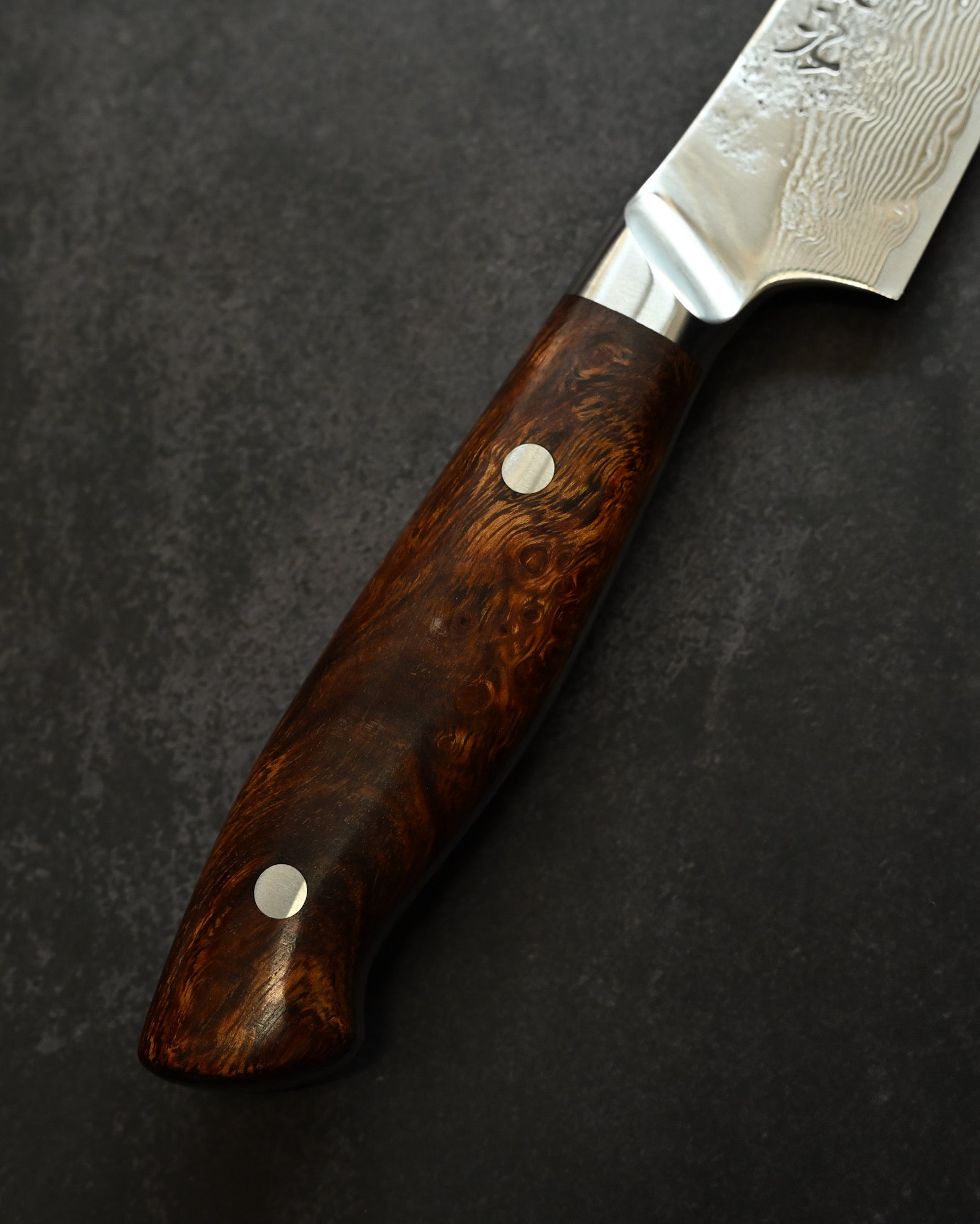 Saruku Atsumori Santoku Petty Knife 135mm Japanese Kitchen Knife SPG2 Damascus Ironwood Handle