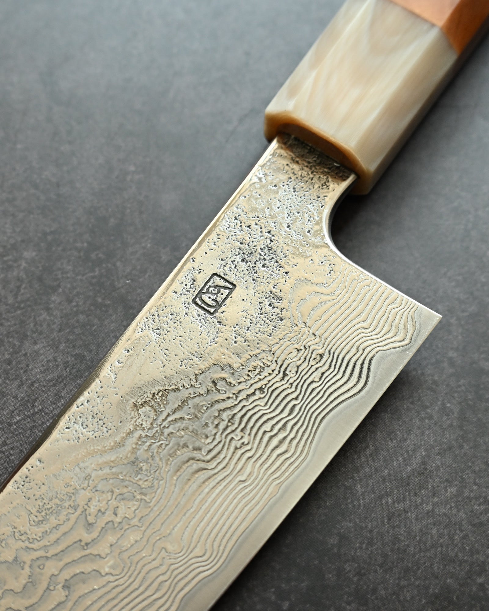 Steel: SPG2 (Super Gold 2) Powder Stainless Steel, Damascus multilayer construction