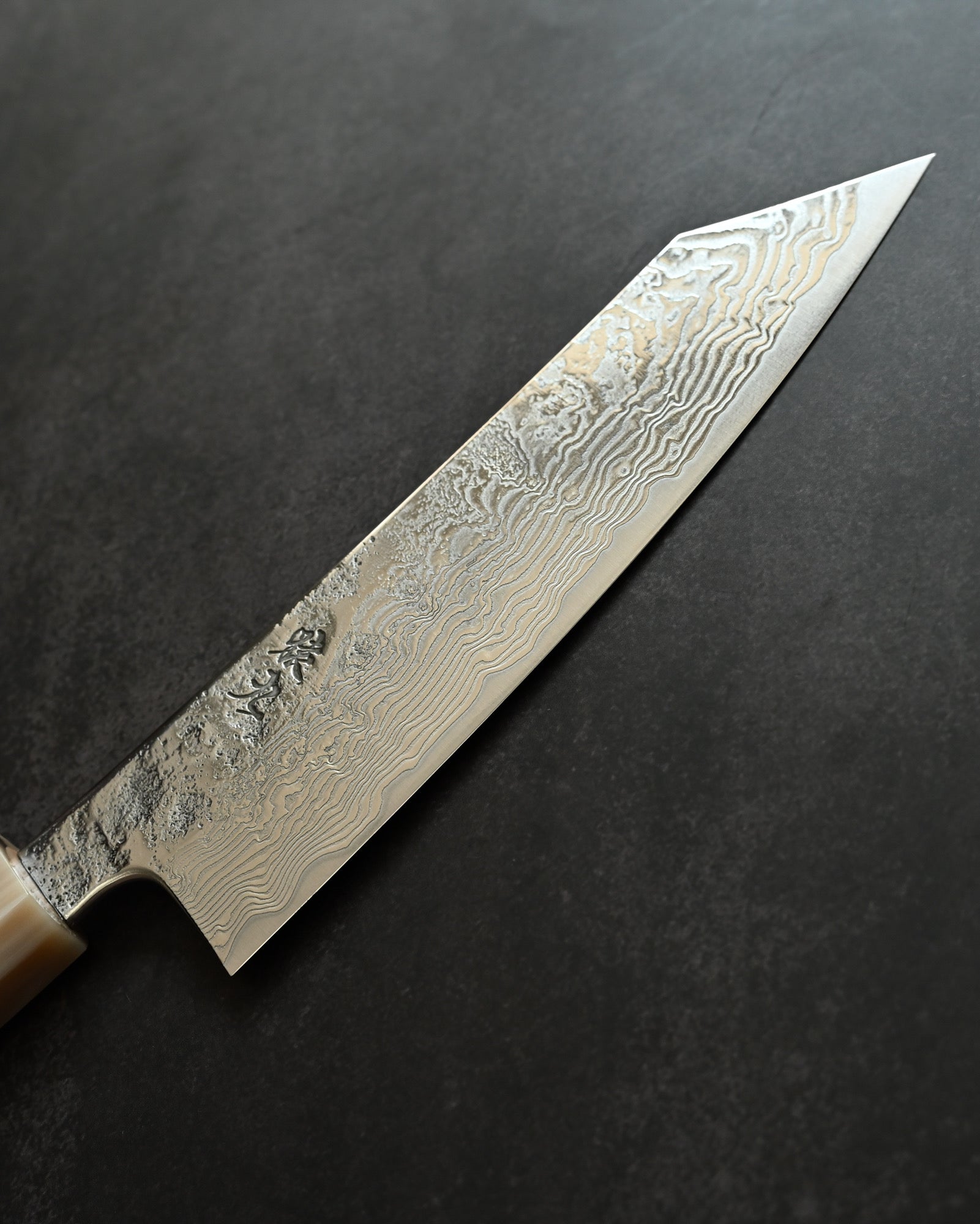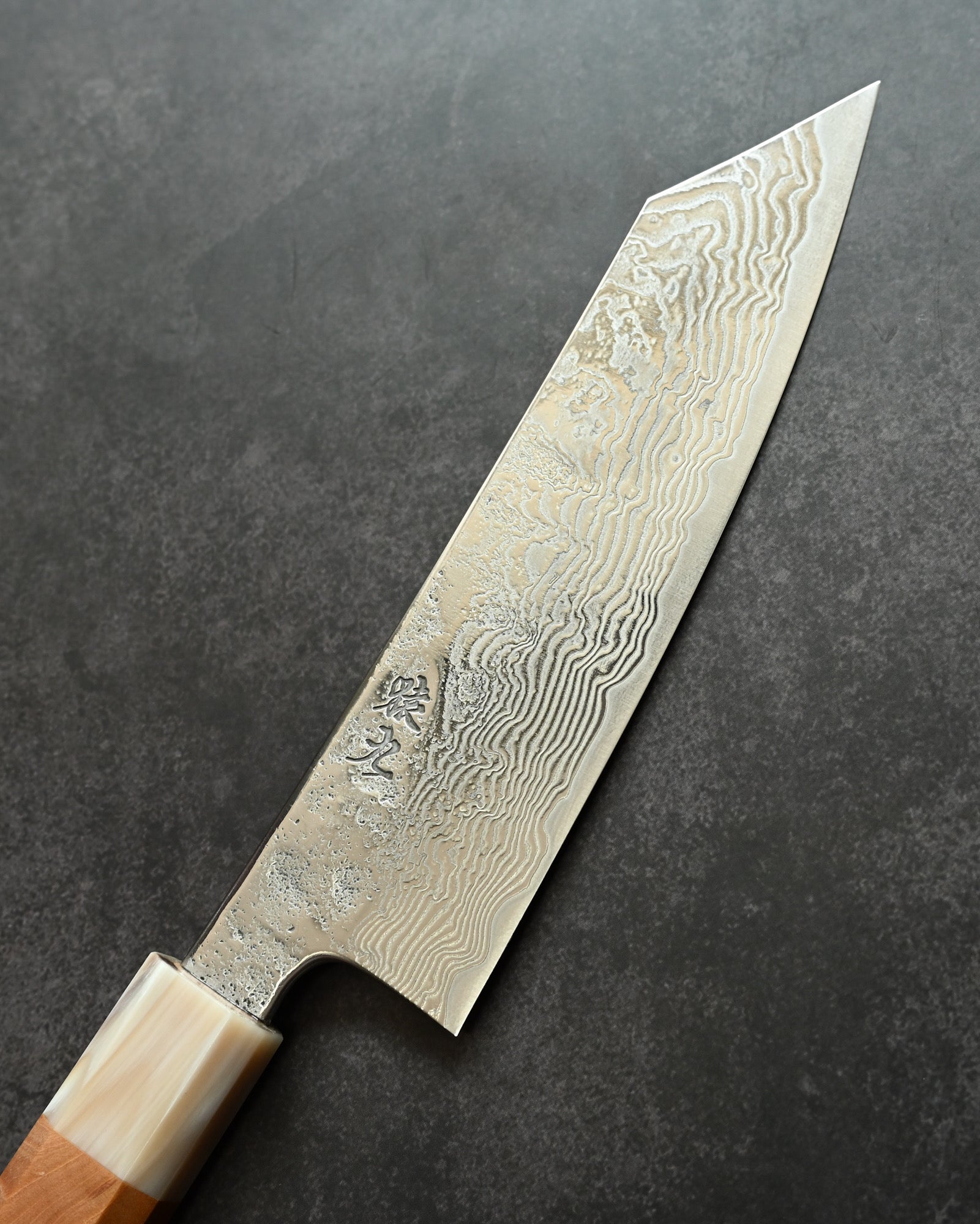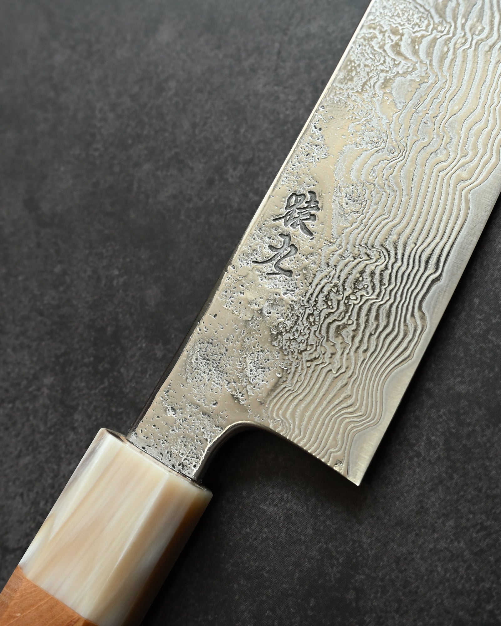 Saruku Homura-Un Knife 165mm Japanese Kitchen Knife SPG2 Damascus Burl Wood Handle Buffalo Horn Ferrule