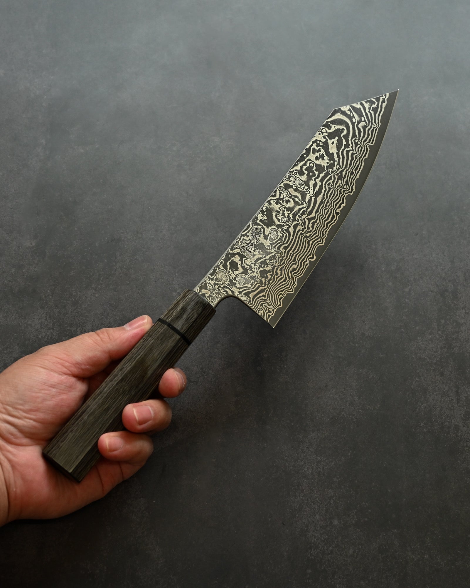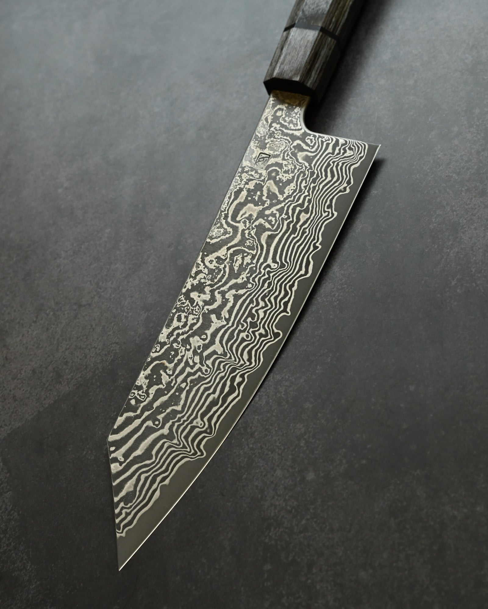 Saruku Homura-Un Santoku 180mm “Sumi”|Japanese Kitchen Knife SPG2 Damascus