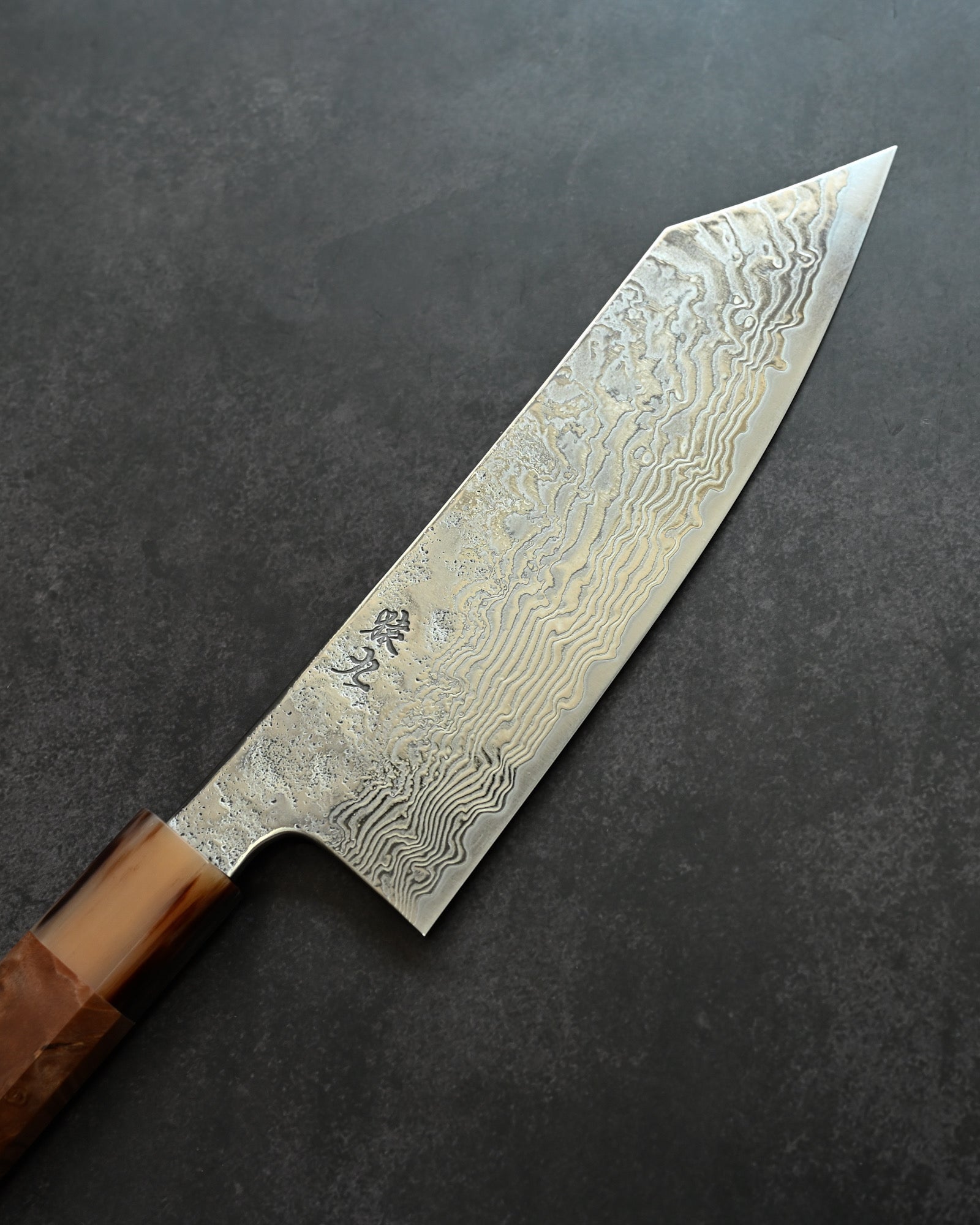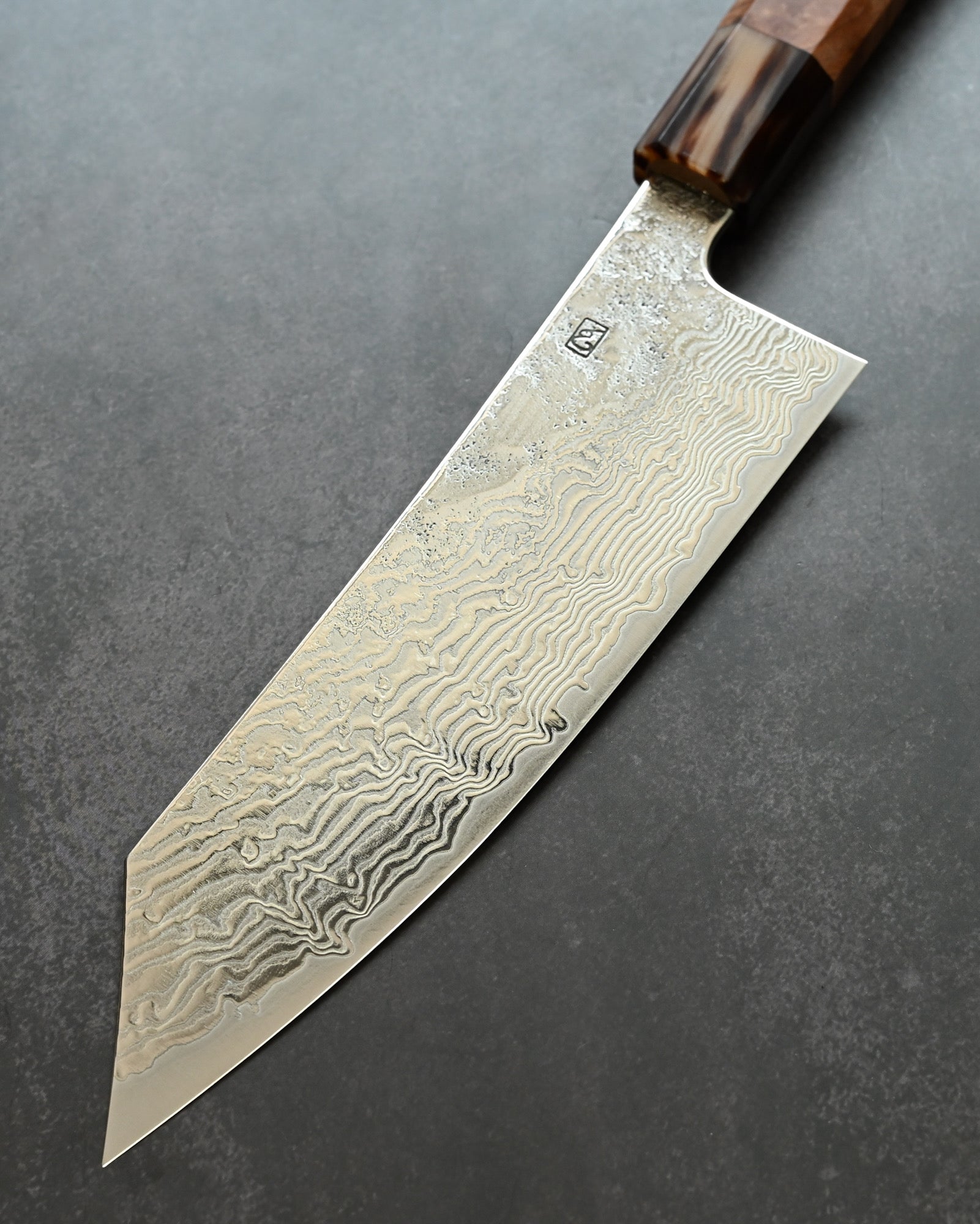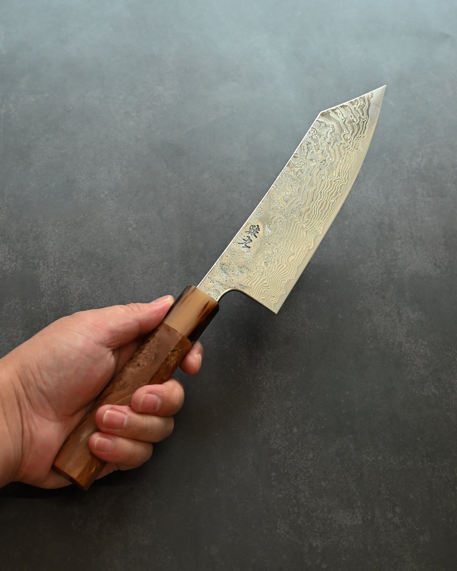 Handle: Natural Burl Wood (Karin Burl) + Buffalo Horn Ferrule