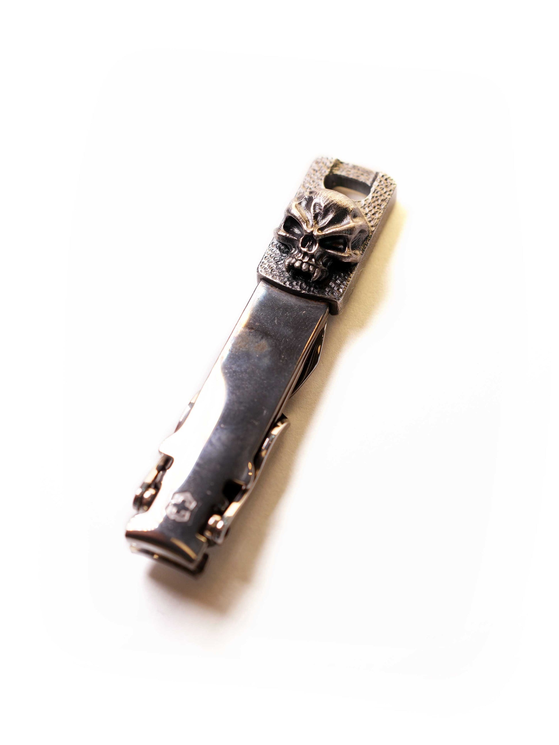 What happens when traditional Victorinox everyday items are combined with Steel Flame's innovative individuality? This Victorinox nail clipper chosen by Derrick answers that question! The base is handmade, and the finely crafted skull added to it makes this nail clipper a center of attention. Victorinox guarantees the quality of the nail clipper, and it's suggested that you add this artisan-crafted piece to your EDC collection for a touch of class.