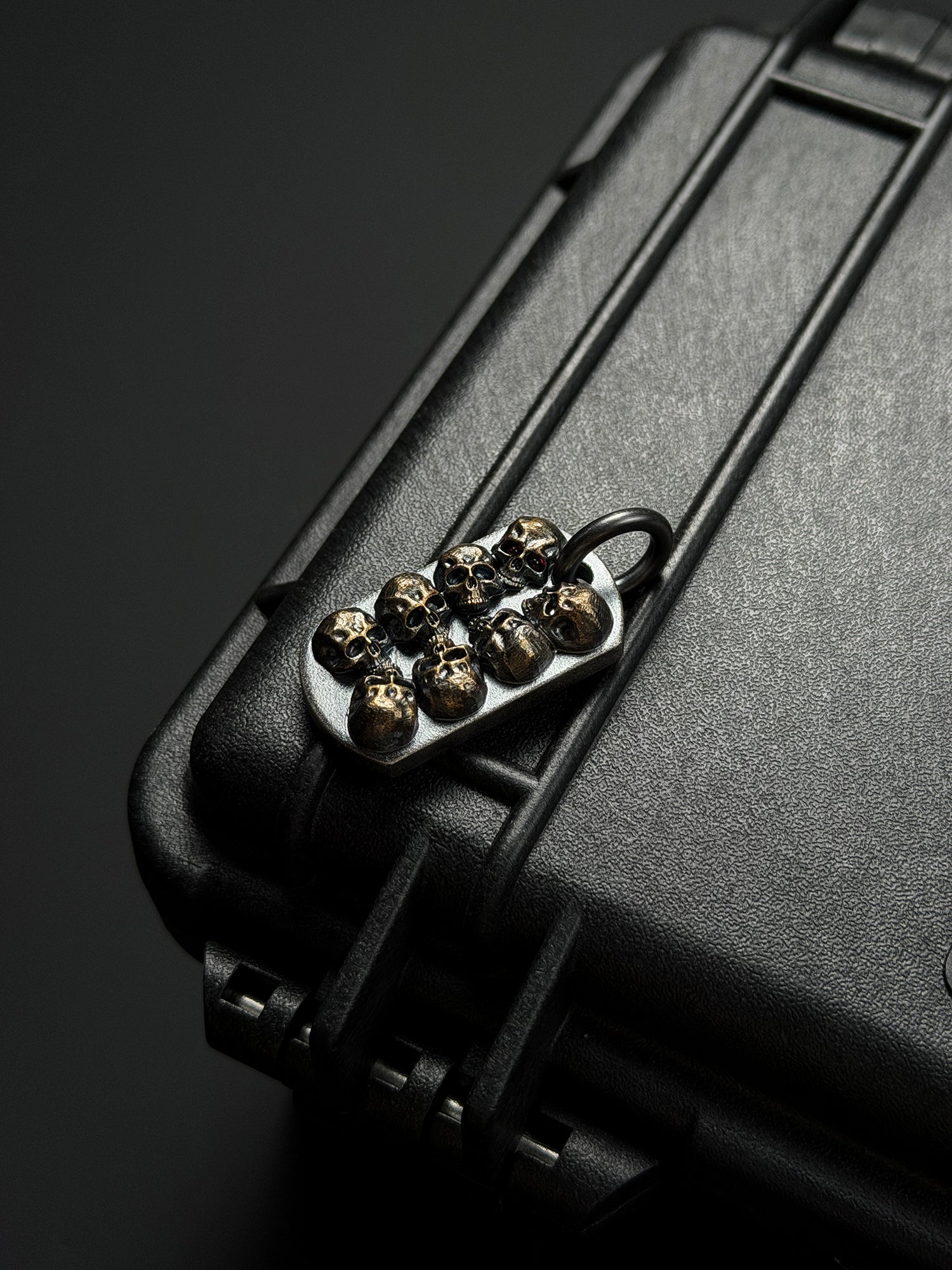 Steel Flame POS Warrior Skull Bronze TAC Pendant | Eight 3D Bronze Skulls × One Set with a Red Eye | Iconic POS Layout with Heavy Bronze Presence