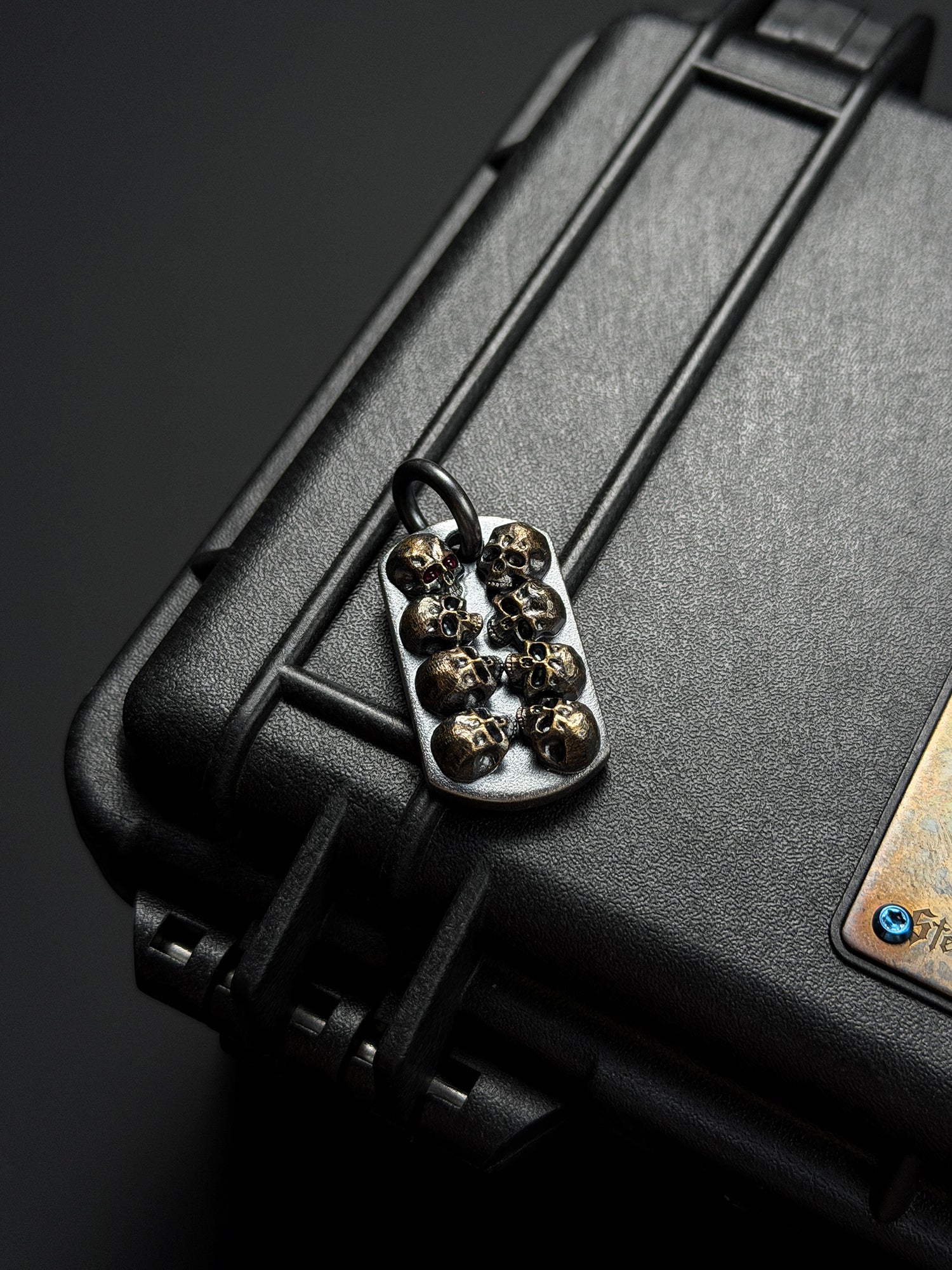The pendant features eight fully 3D bronze Warrior Skulls, arranged in a tight, disciplined grid.