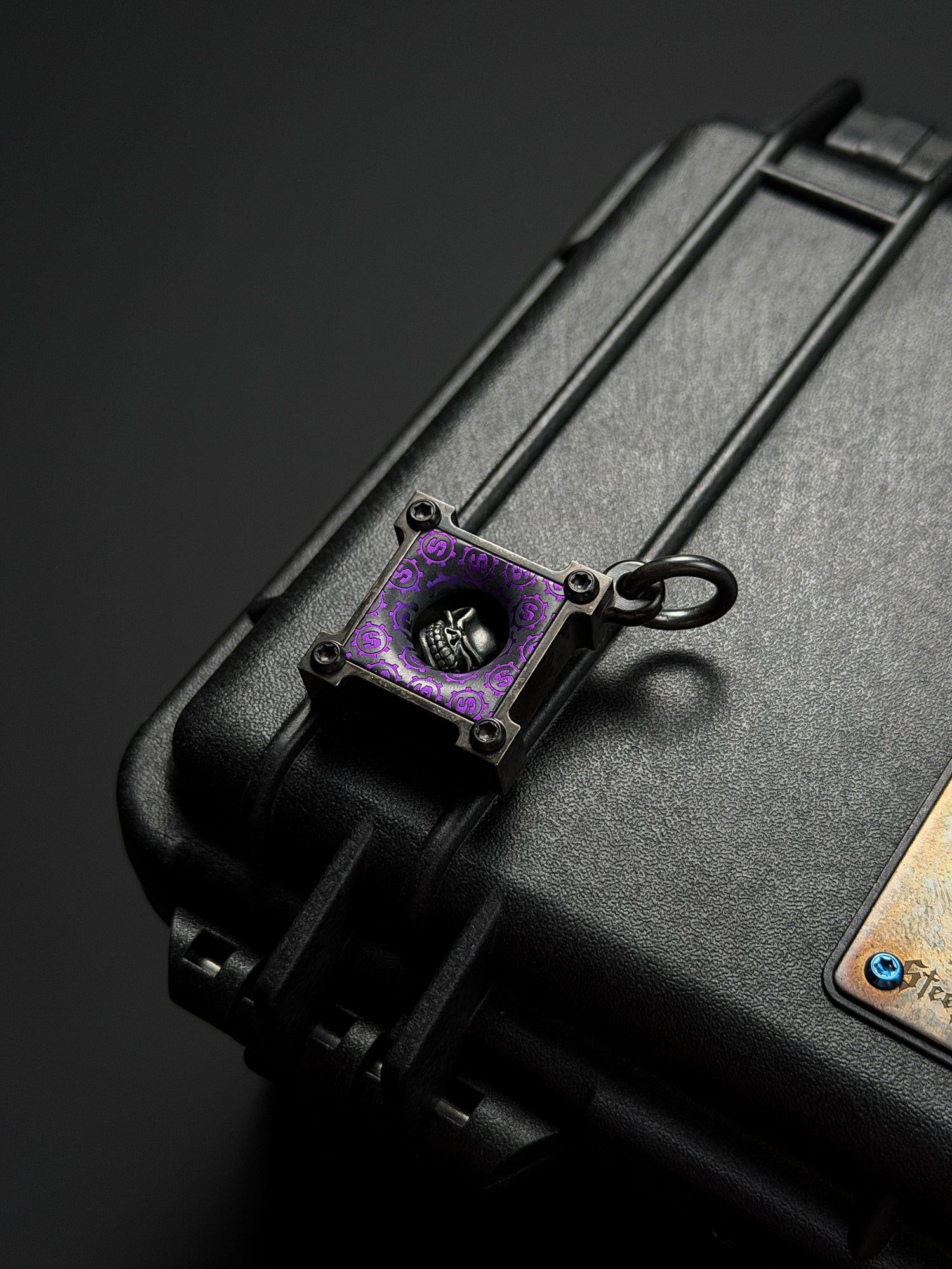 Steel Flame × Starlingear Killbox Collaboration Pendant | Stainless-Steel Body × 3D M-Size 925 Silver Skull | Purple Niobium S-Pattern Background & Dual Signature Engravings