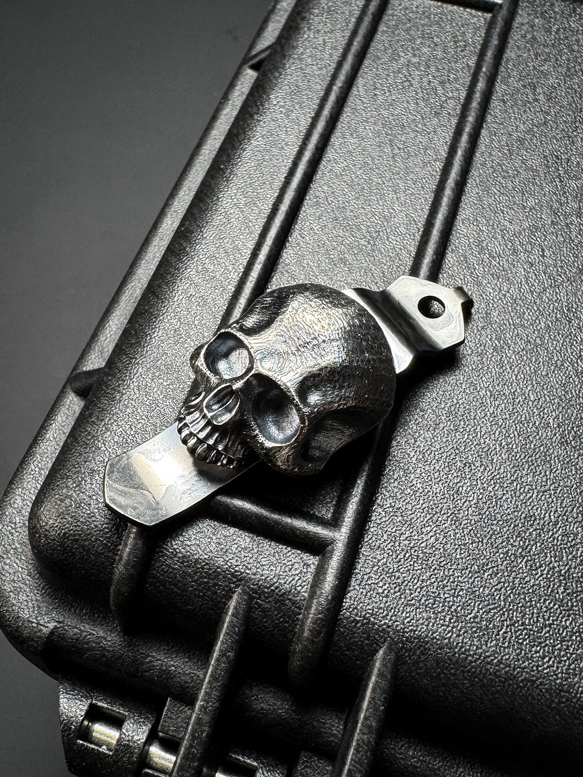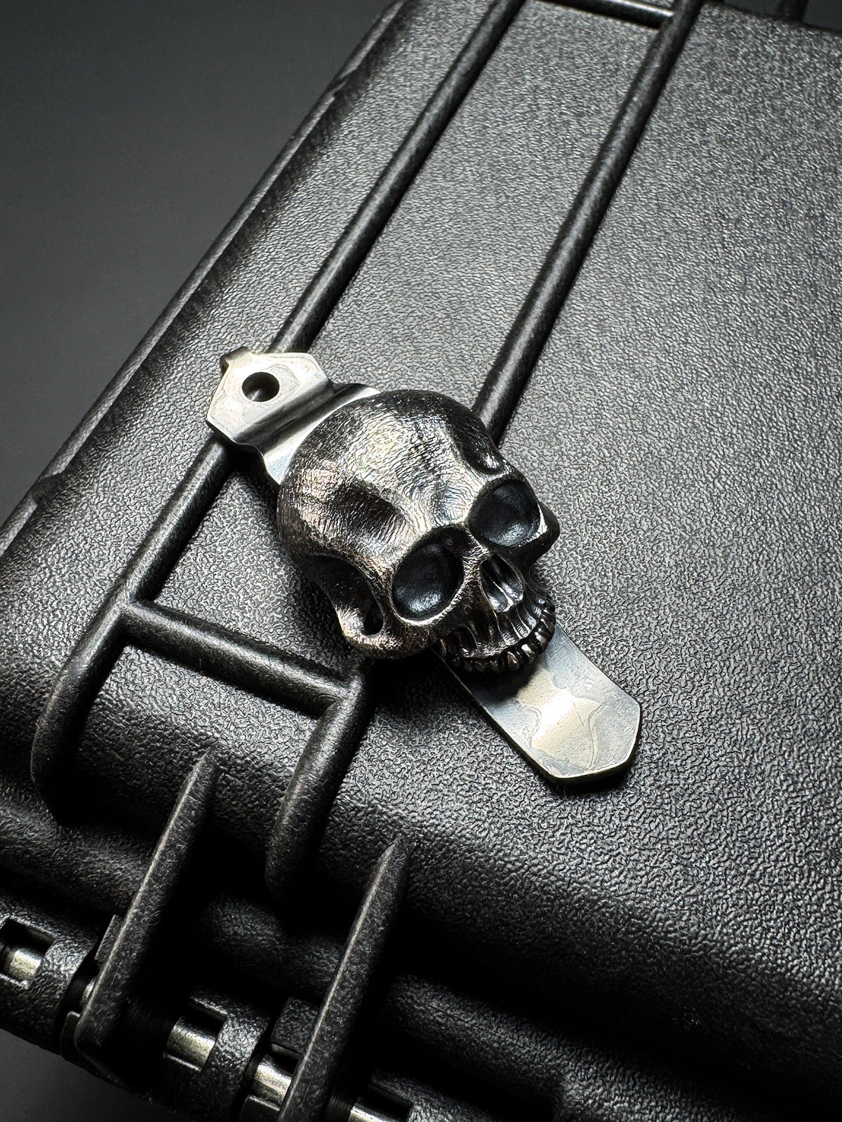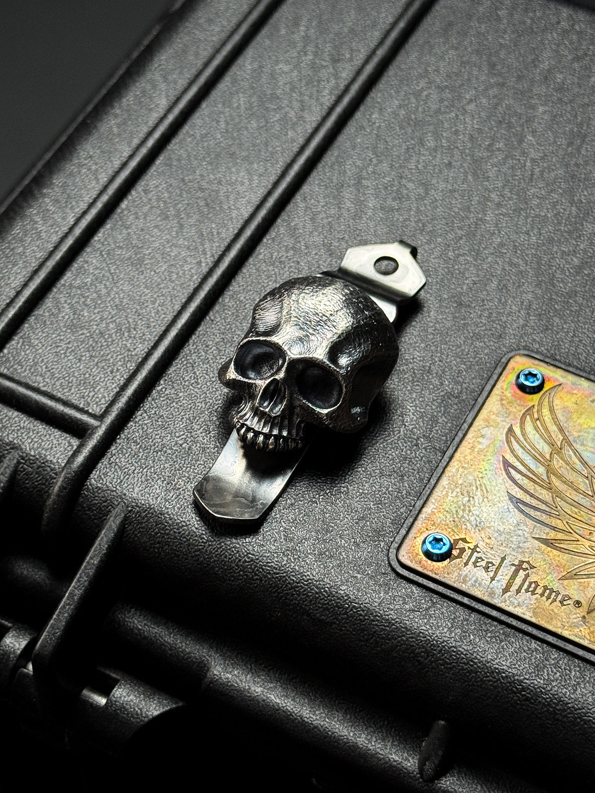 The Silver Warrior Skull XL Pocket Clip is the ultimate collaboration piece from Steel Flame, Starlingear, and Strider — three legendary brands coming together. Crafted from high-strength stainless steel, it features a meticulously detailed 925 silver Warrior Skull inlay at its center. Every detail reflects masterful craftsmanship, offering a sense of pride in ownership.