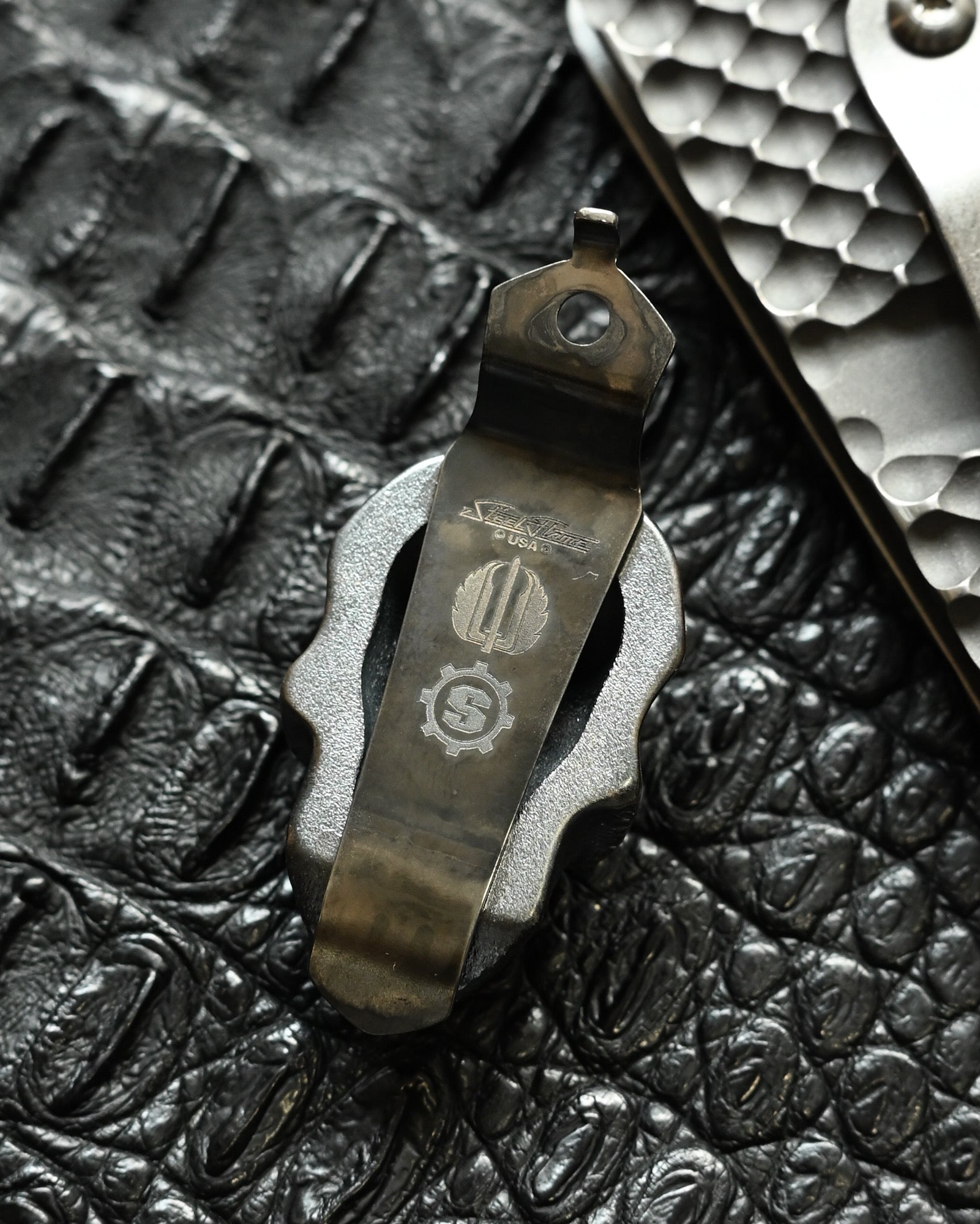 Steel Flame × Starlingear × Strider Triple Collaboration Pocket Clip – Stainless Steel XXXL / 925 Silver Dark Skull Inlay