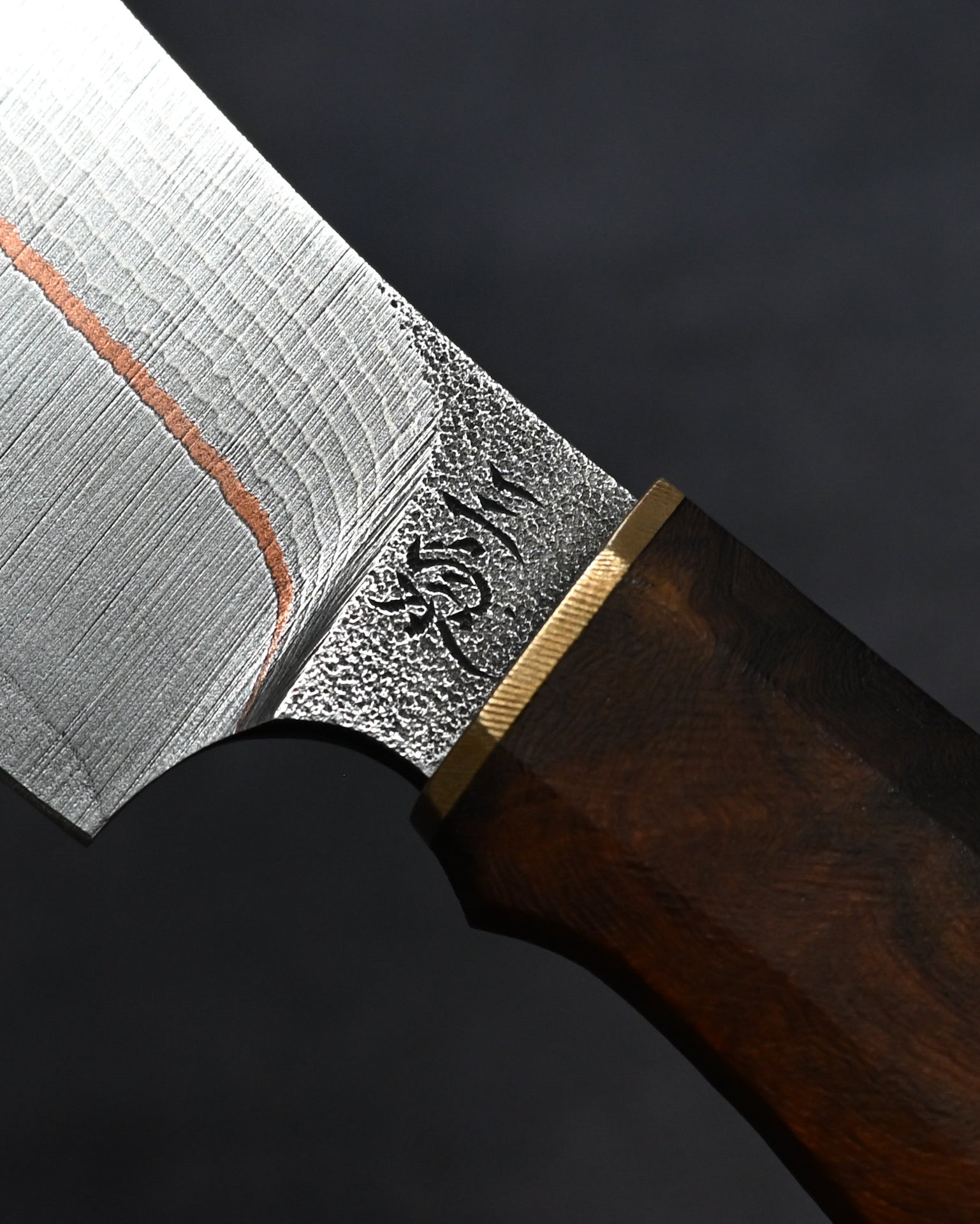 Sunizumi Knives “Little Brown” Full Custom Outdoor Bunka Knife VG7 Damascus + Copper (#4)