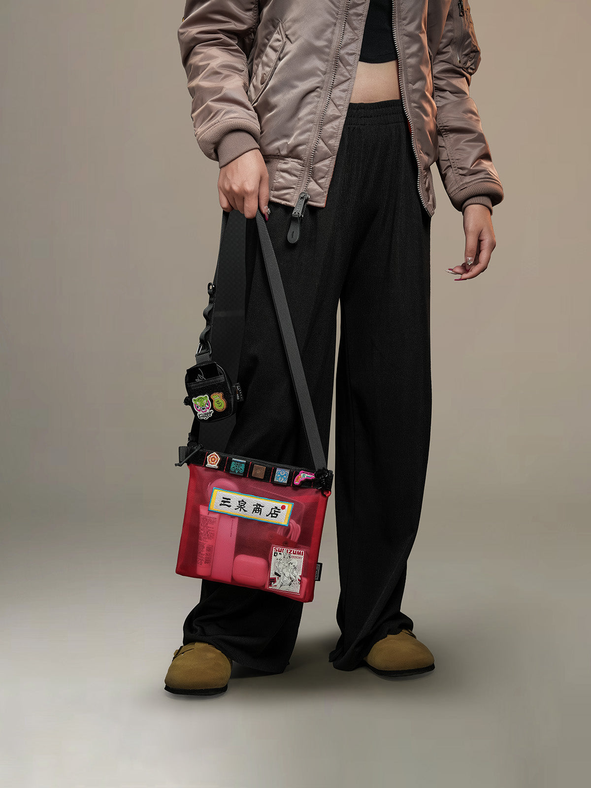 This storage bag combines urban comic culture with a semi-transparent, durable nylon mesh material, providing the perfect solution for organizing daily essentials such as cables, passports, and cosmetics. It features a strong visual layering effect.