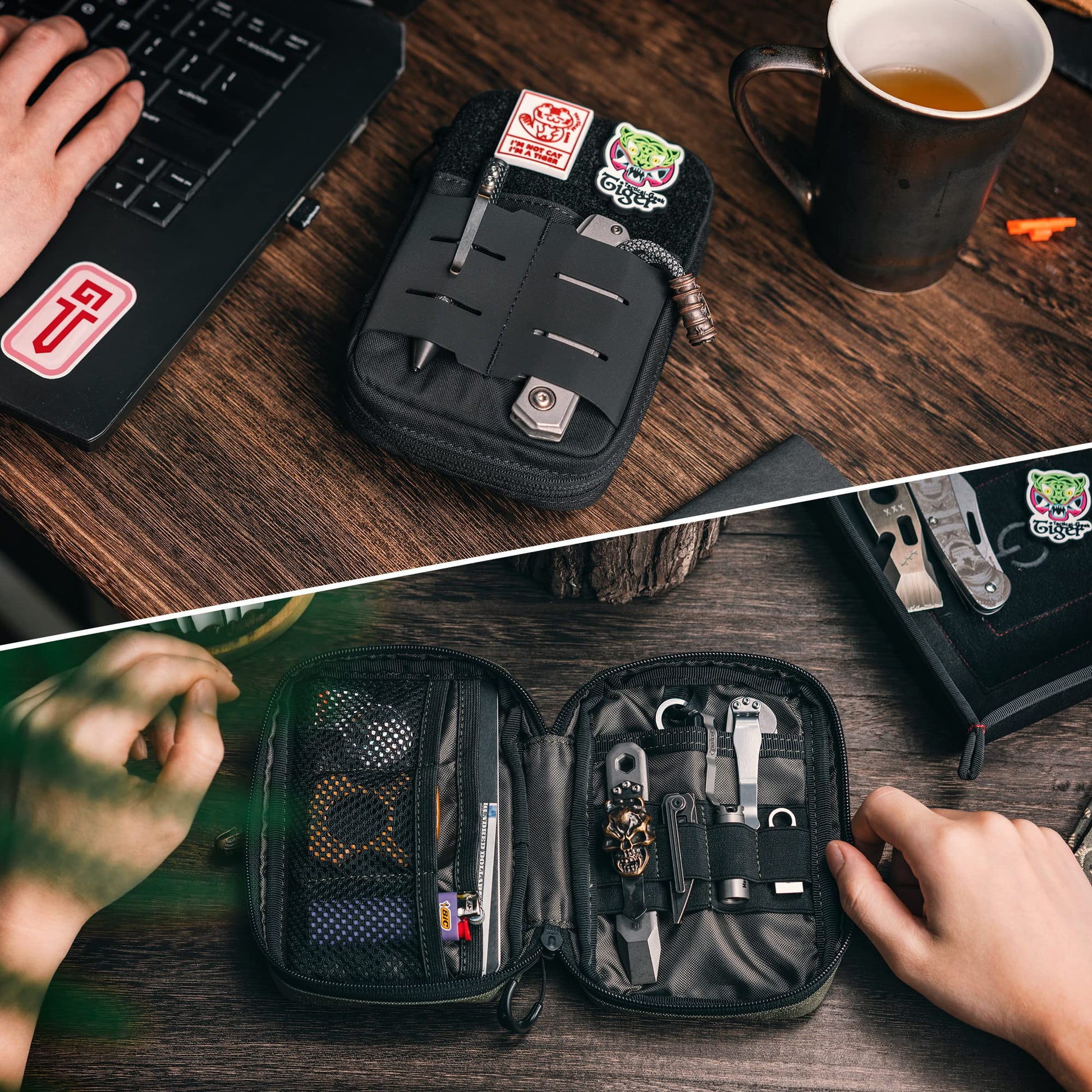 - UPGRADE DIY HOOK & LOOP AREA:HOOK & LOOP design, our Molle tool pouch reserve the DIY HOOK & LOOP area for personalized decorative patches, everyone can paste a variety of personality magic tags. It will be very cool if everyone can create a unique compact waist bag he wants.(PS: All EDC gear and patches that are shown in the images are not included.)