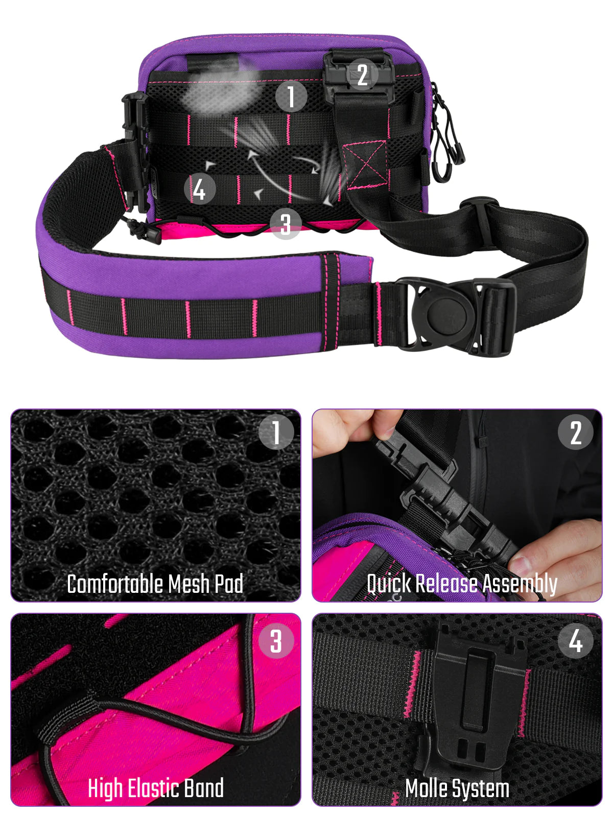 - DURABLE & BREATHABLE DESIGN:The backing and shoulder strap with soft and breathable padded lining, is very soft and breathable, so when you sweat a lot it can dry quickly that won't make you feel uncomfortable. An adjustable and non-slip padded shoulder strap can be adjustable according to height or body type. Outfitted with an ergonomic rotating UTX-Duraflex buckle and both sides have the quick-release buckle, you can untie the shoulder straps quickly, giving you extreme carrying comfort.