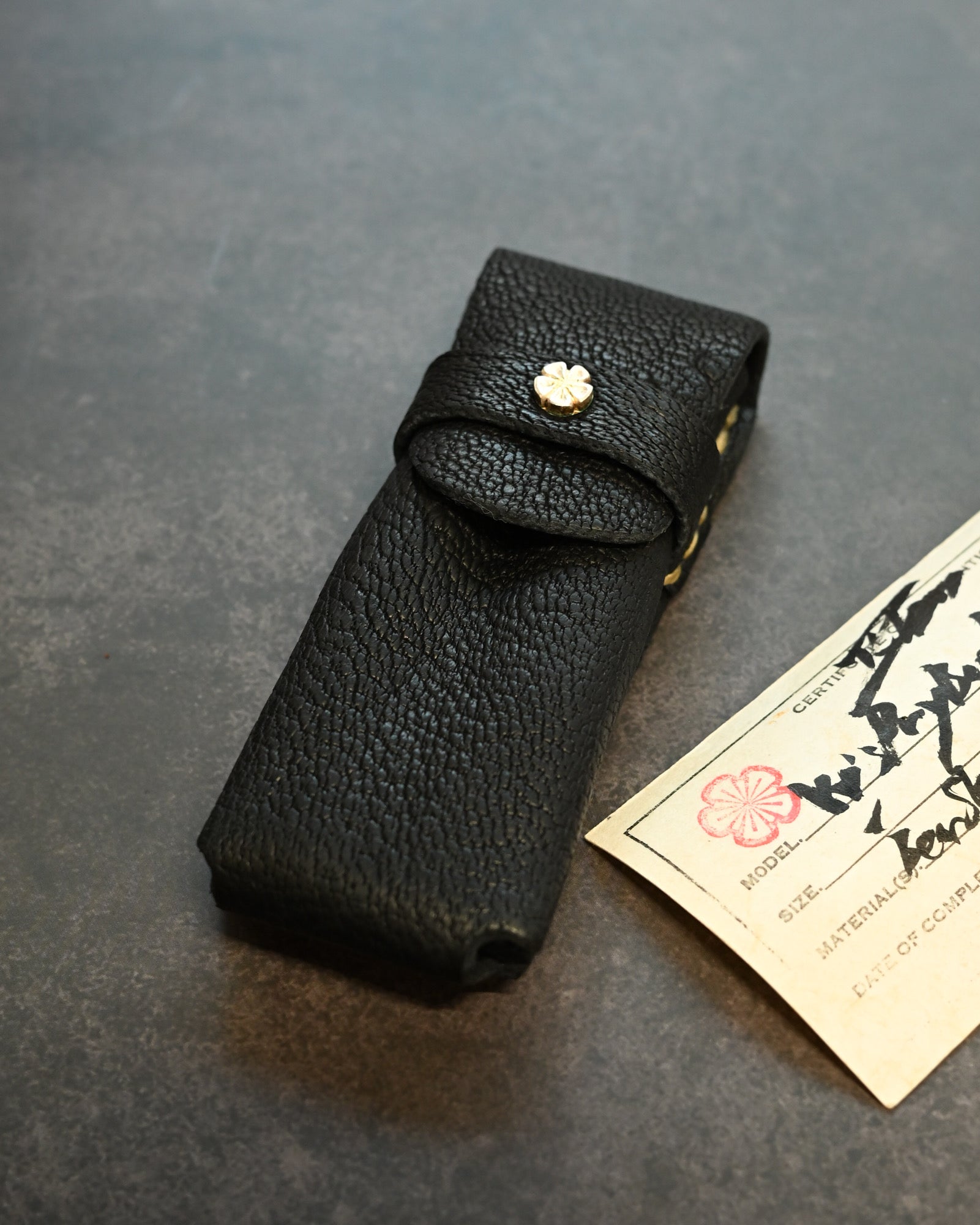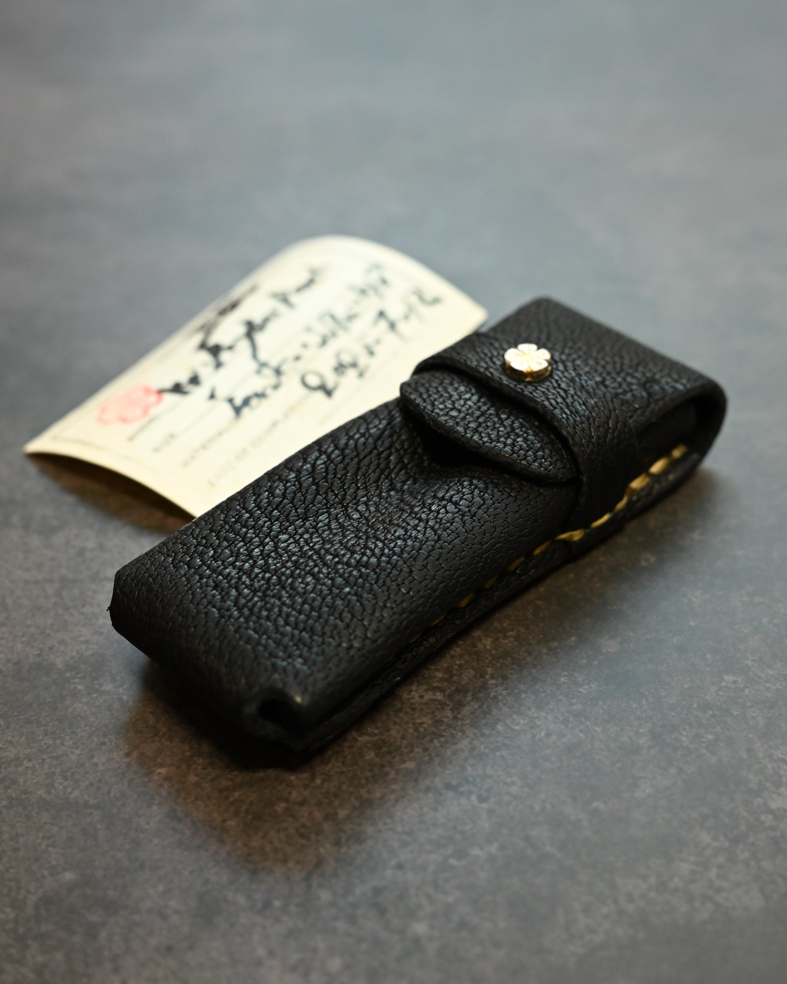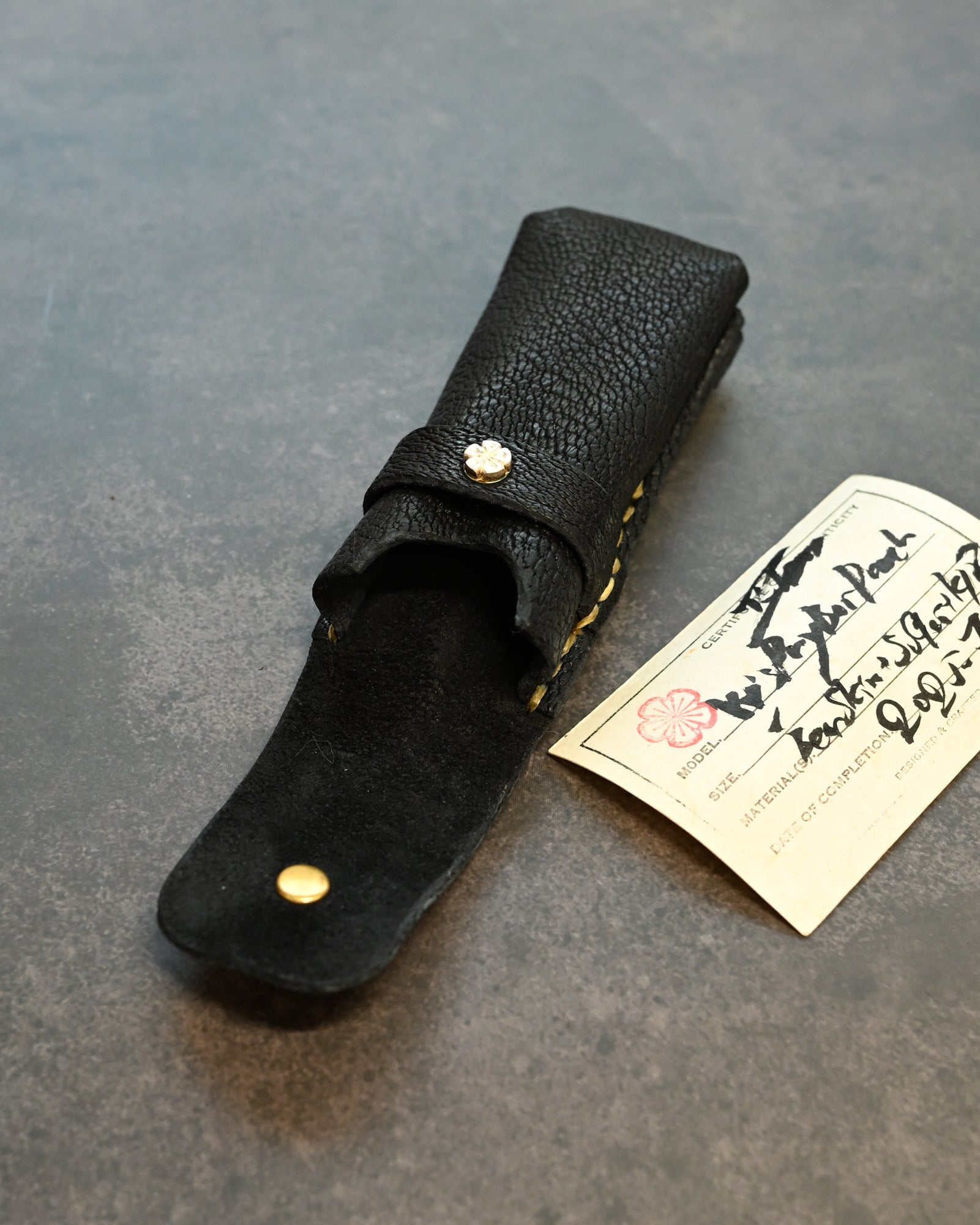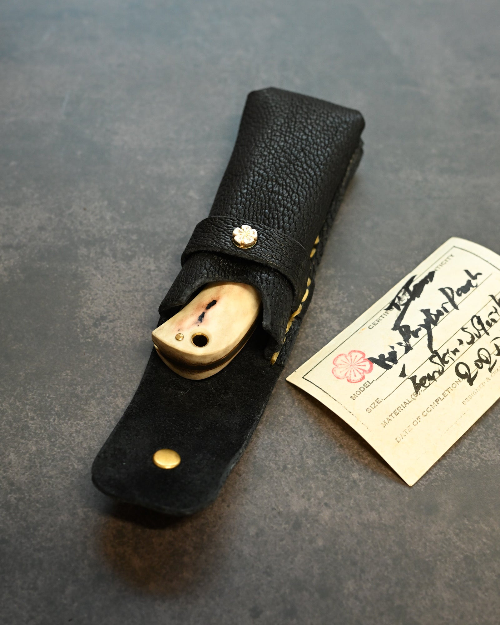 Wtopia Handmade Knife/Tool/Flashlight Pouch|Japanese Bear Leather with 925 Silver Ginkgo Inlay|Hand-Signed Birth Card|One of a Kind