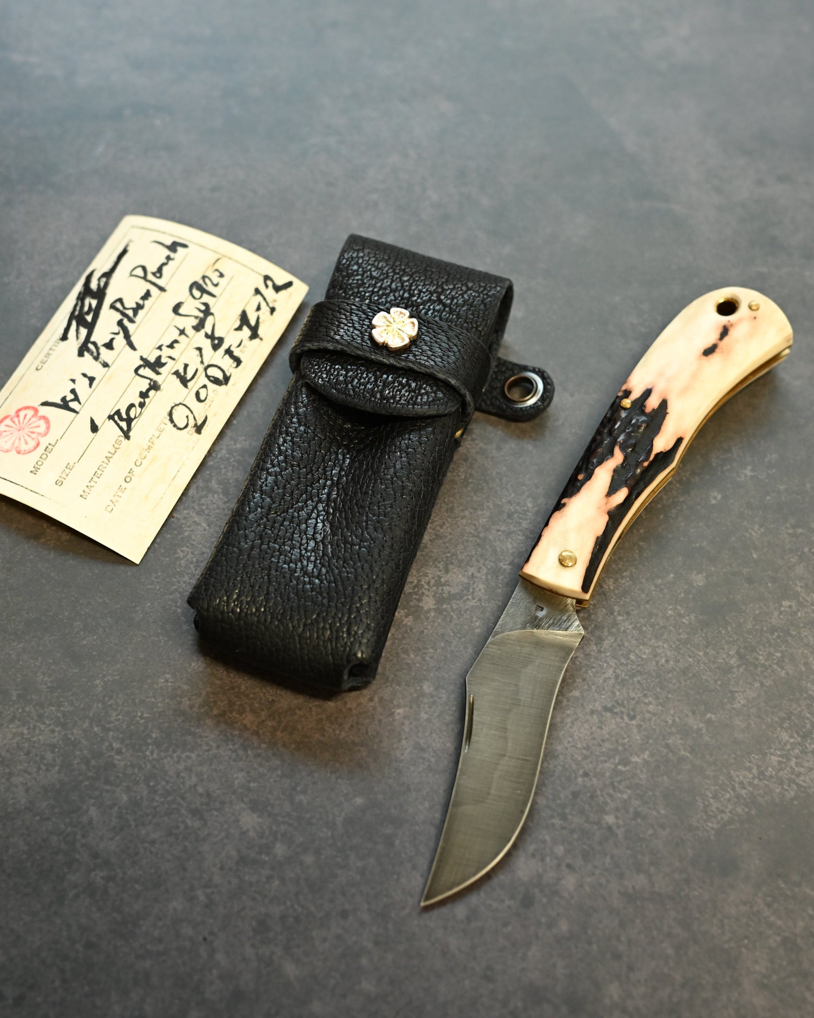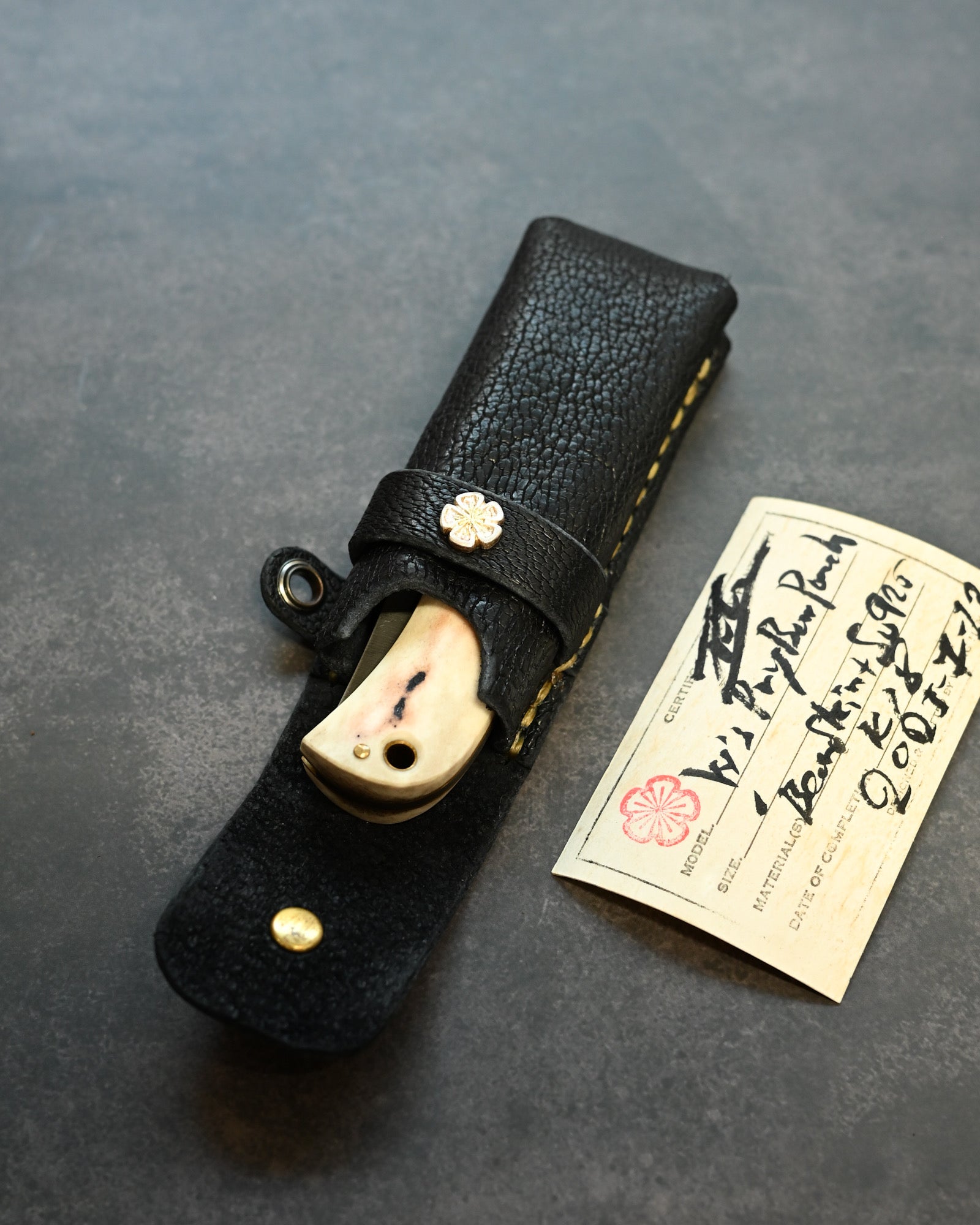 Wtopia One-off Bear Leather Knife Pouch | 925 Silver Apricot Blossom Inlay | Limited Handmade