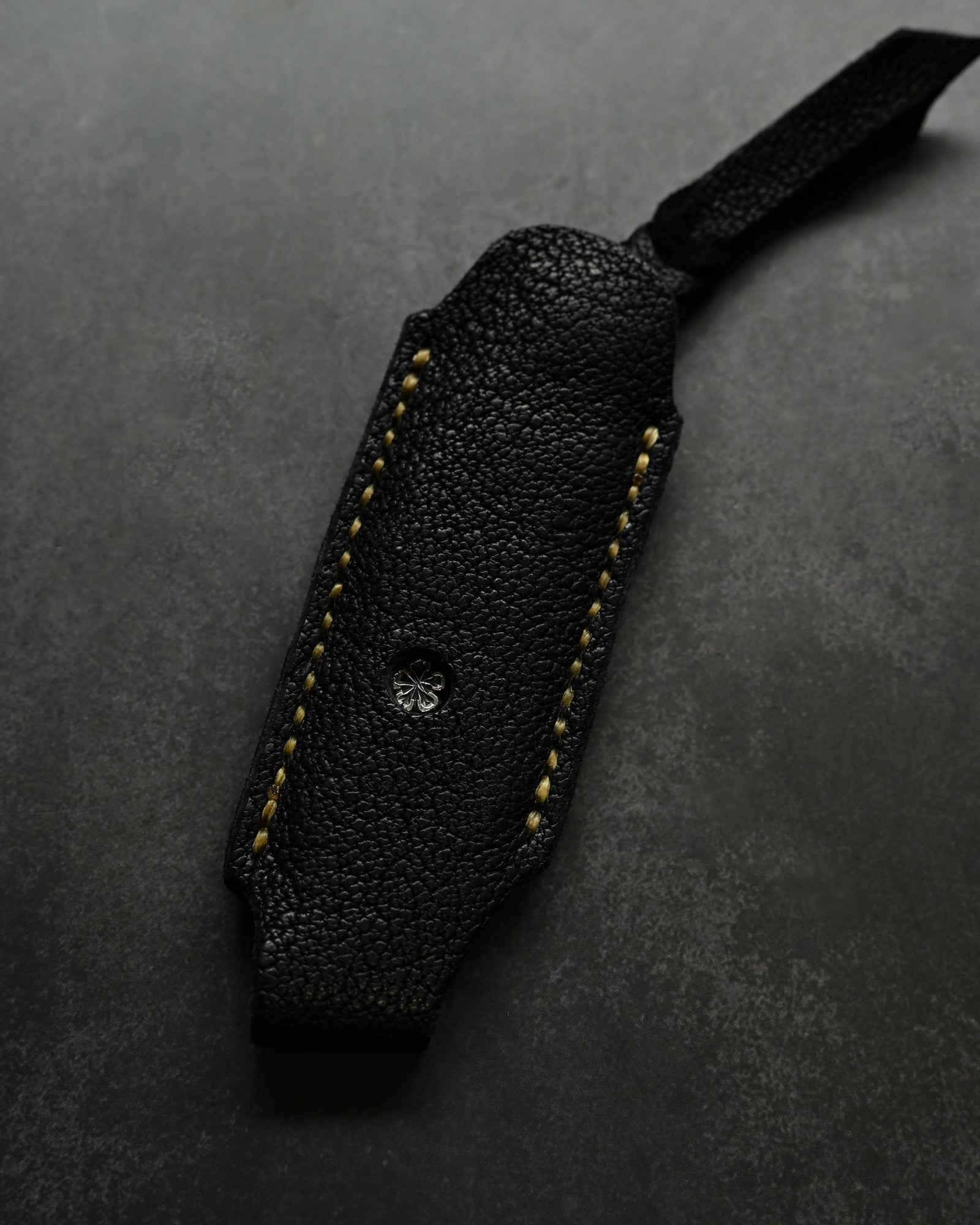It comes paired with a hand-stitched bear leather sheath, crafted entirely in Japan, where every stitch reflects care and intention.