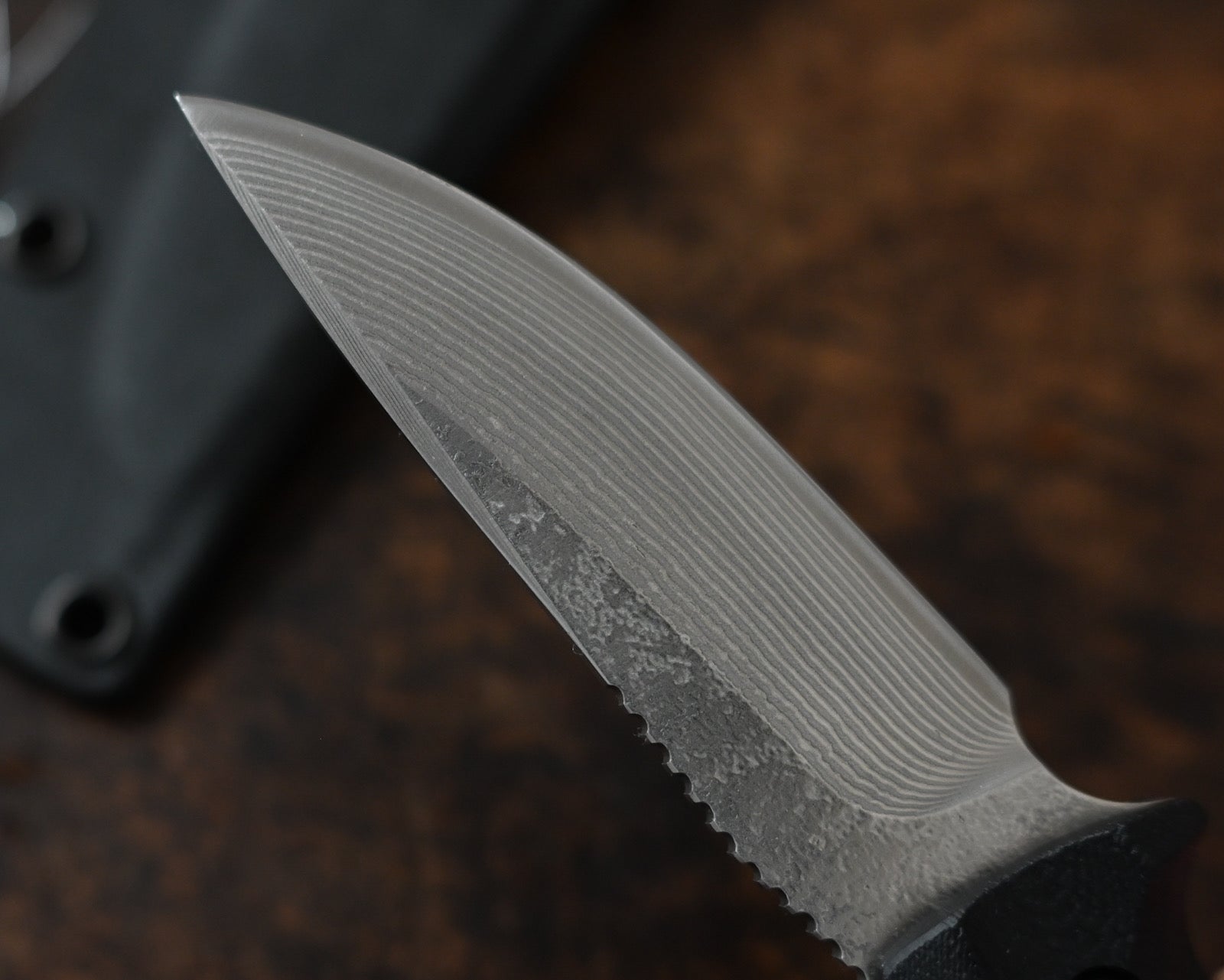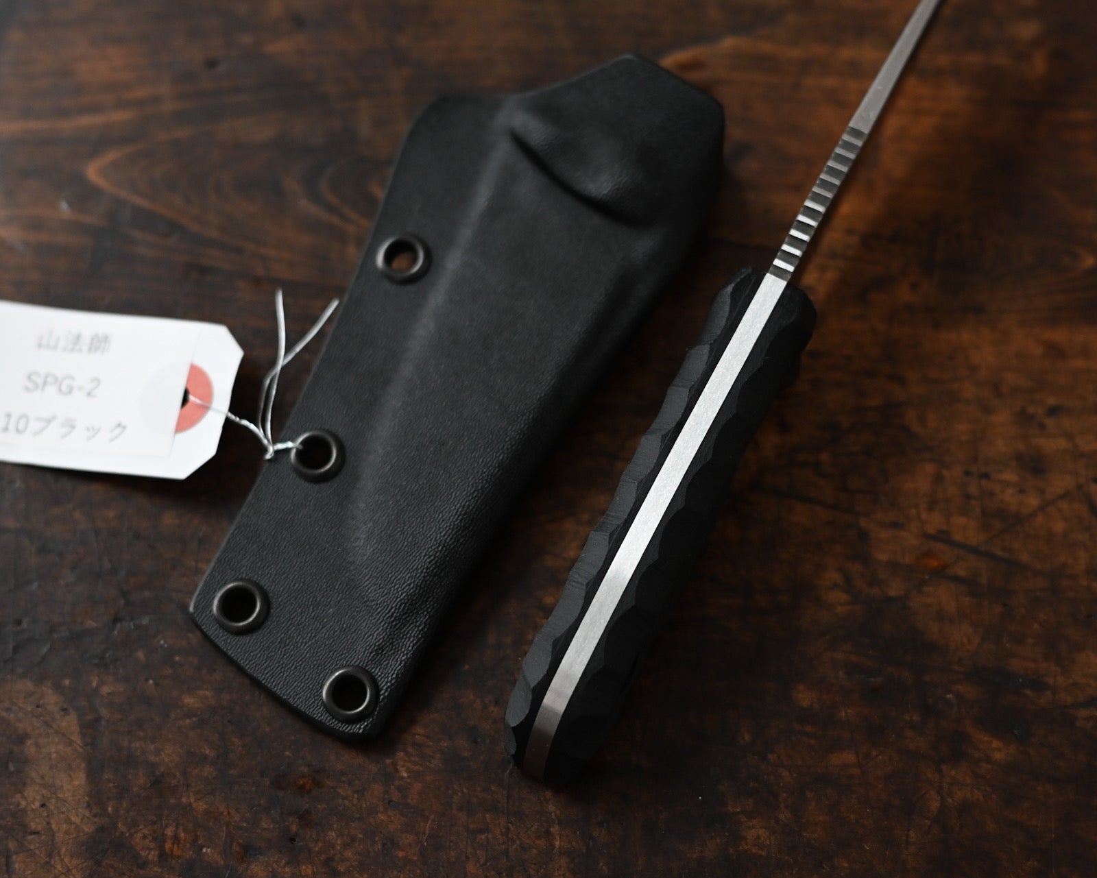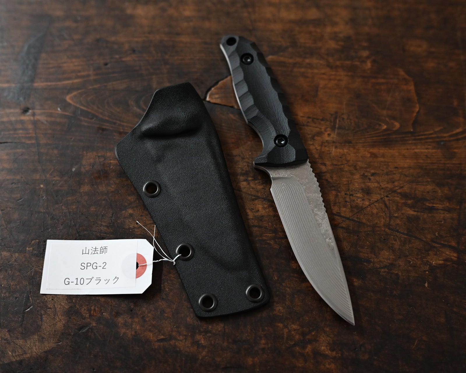 The sculpted black G-10 handle provides a secure and ergonomic grip, ensuring excellent control even in wet conditions. Paired with a Kydex tactical sheath, the Yamabōshi allows for safe storage, quick draw capability, and easy portability.